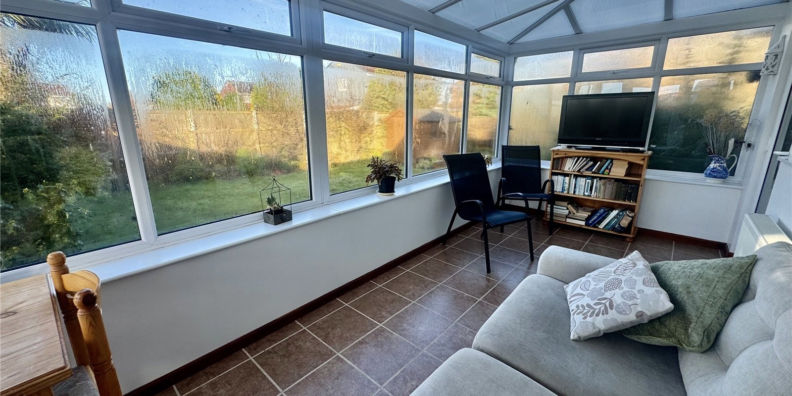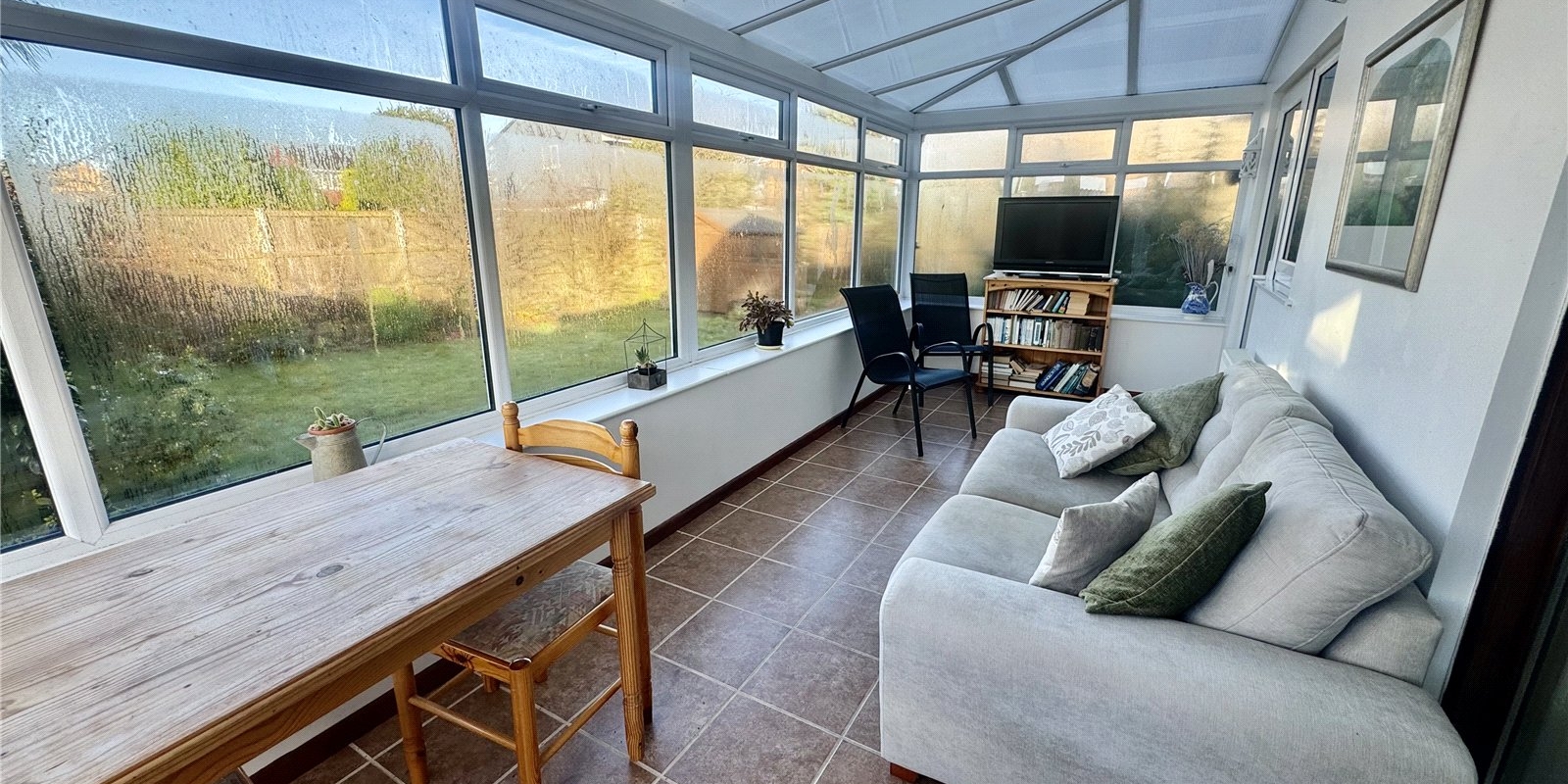 The property also features a family bathroom, fitted with both a bath and a separate shower, serving the remaining bedrooms. To the rear of the bungalow, a bright conservatory enjoys views across the garden, creating an additional reception space that can be enjoyed year-round.