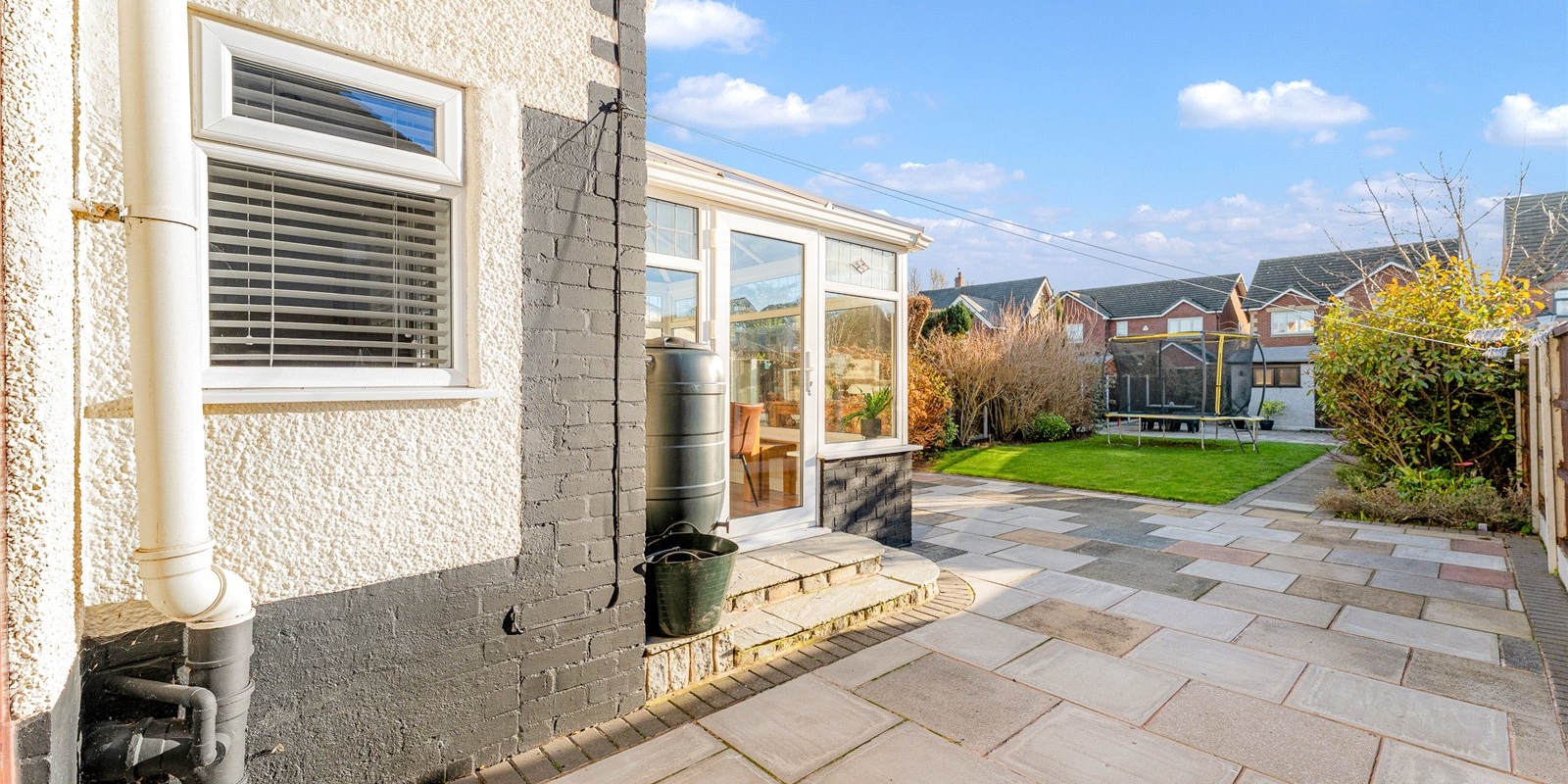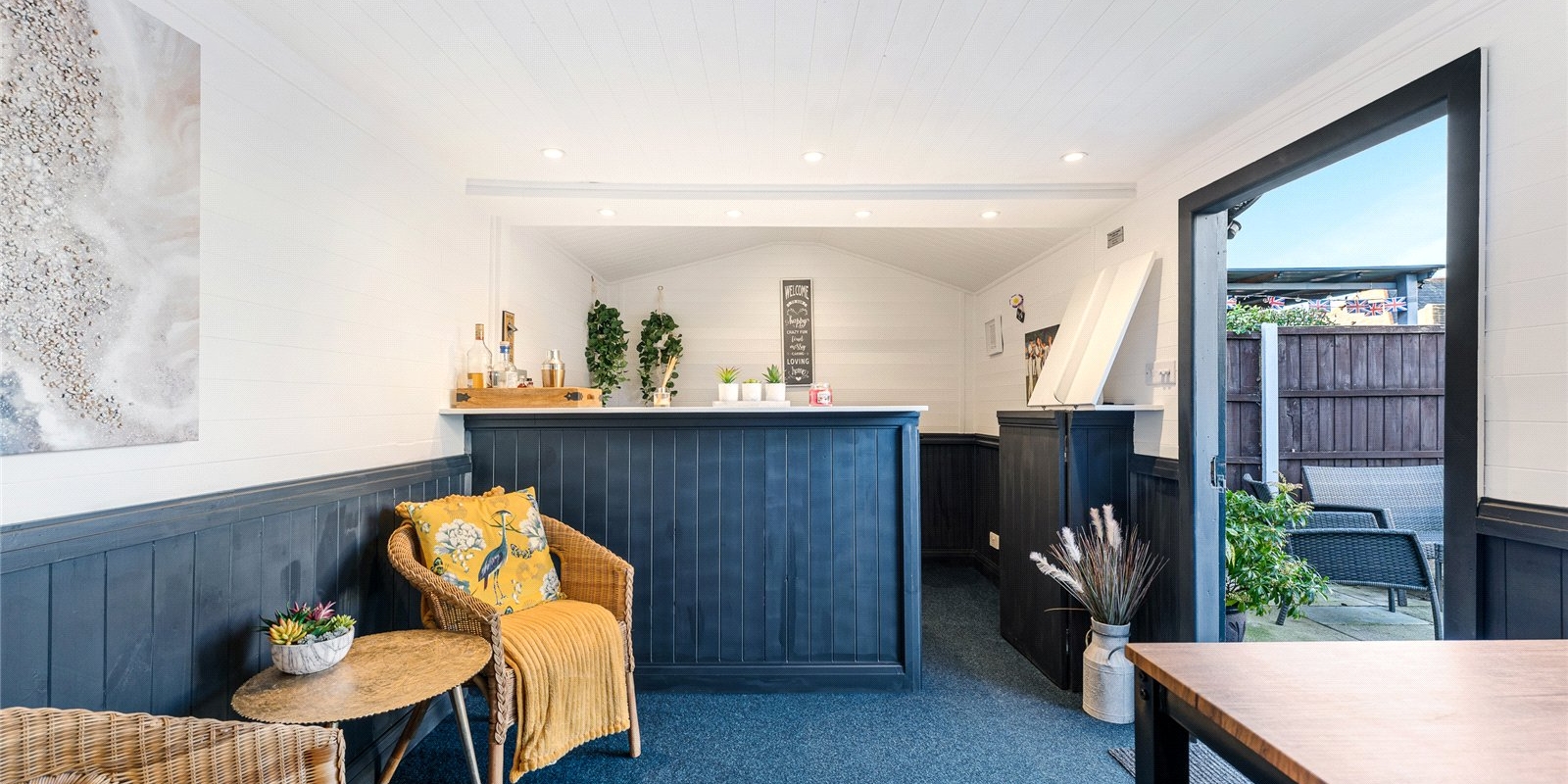 The rear garden is well maintained and offers a fantastic additional feature in the form of a converted outbuilding, currently used as a entertaining space , creating a great social space for hosting and relaxing all year round.