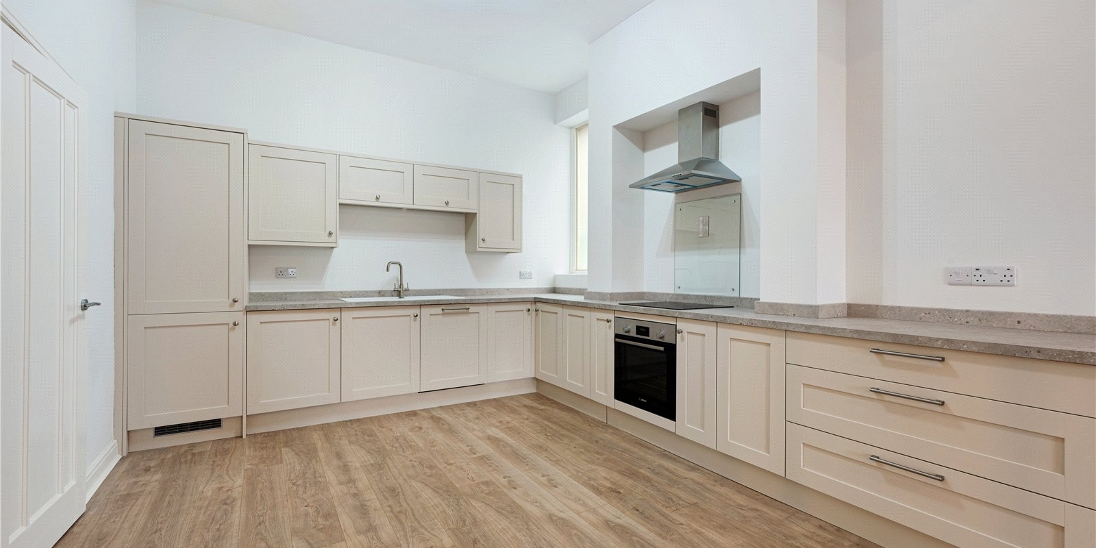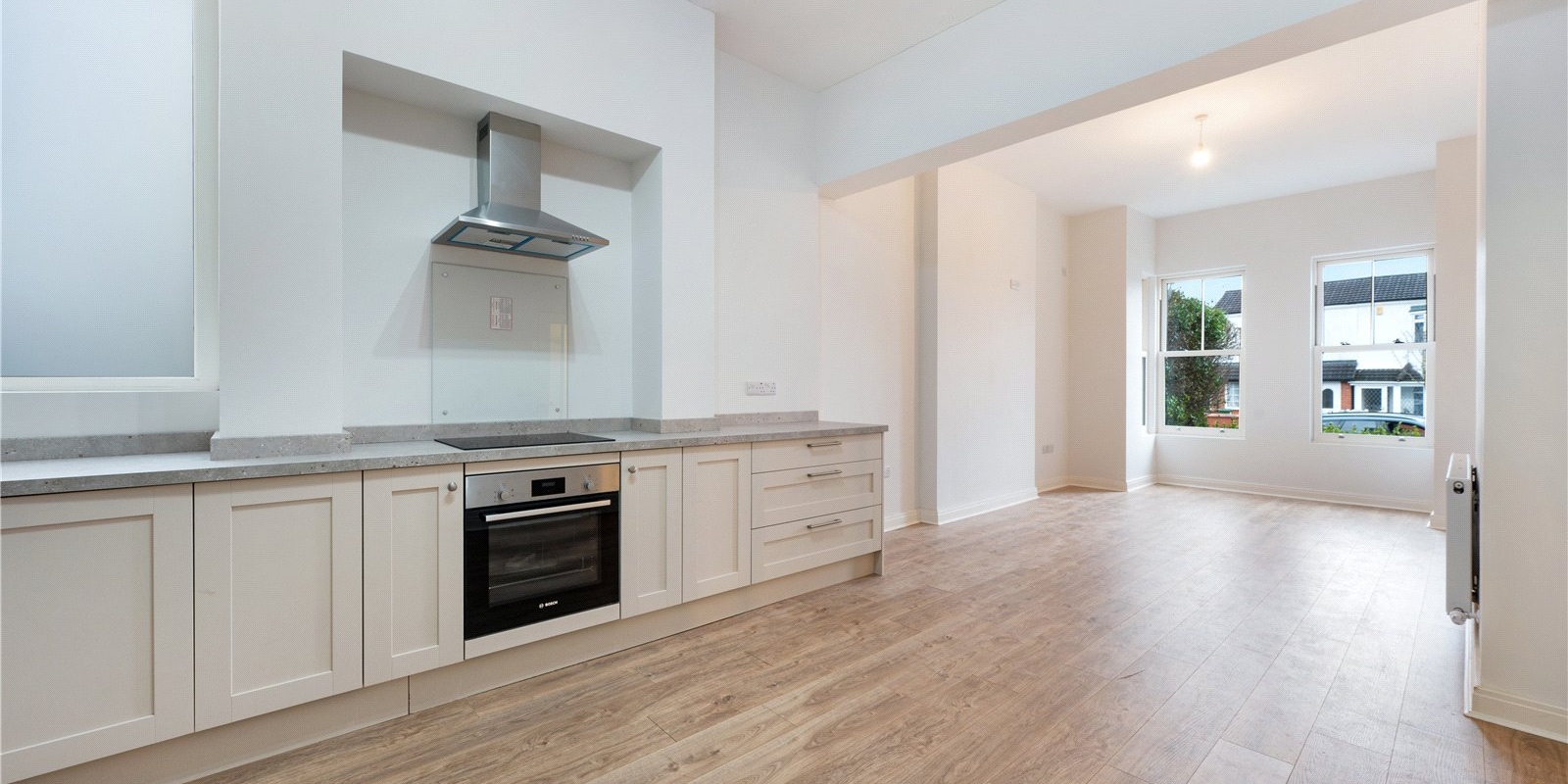 The property has been tastefully updated throughout and is ready to move straight into. Internally, the accommodation comprises a bright and spacious open-plan kitchen and living area, finished to a high standard and featuring a modern fitted kitchen with integrated appliances, including a Bosch oven and hob, and Hotpoint fridge freezer, washing machine and dishwasher. The living space also offers direct access to a private patio, perfect for relaxing or enjoying a morning coffee.