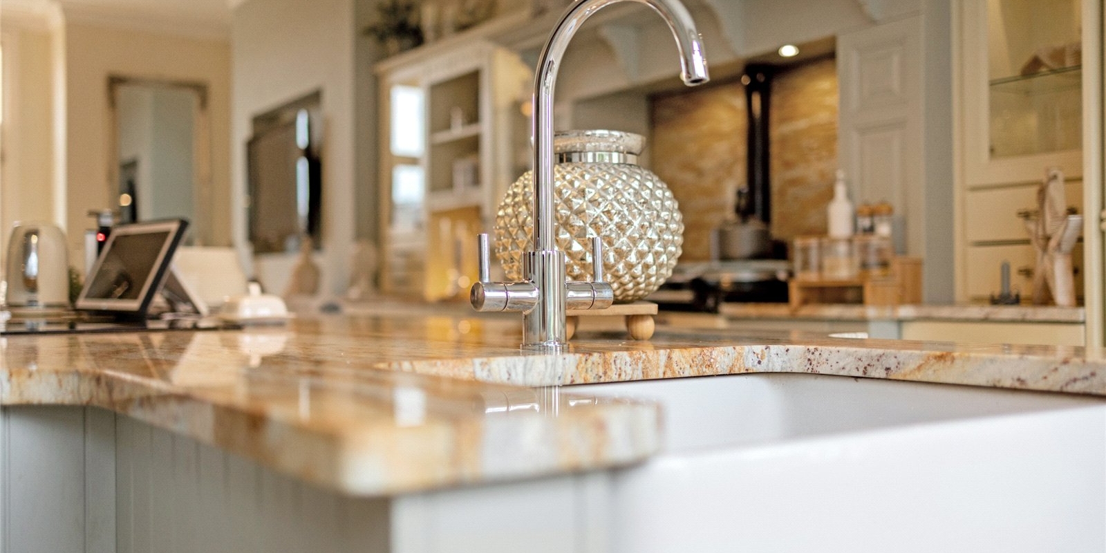 At the heart of the home lies a magnificent bespoke kitchen, designed as both a practical family hub and an elegant entertaining space. The kitchen is beautifully appointed with integrated appliances and a traditional AGA, combining modern functionality with classic character. This inviting and homely space offers generous room for dining and socialising, while adjoining spaces include a separate utility room and study area, ideal for modern lifestyles and working from home.