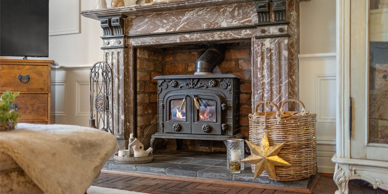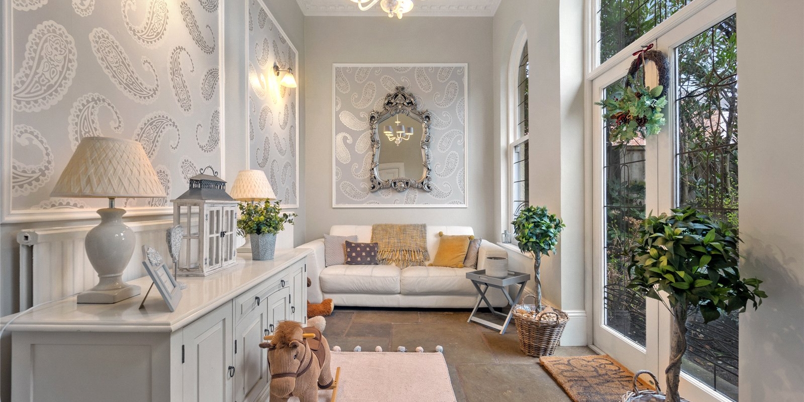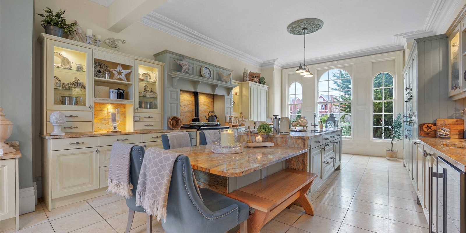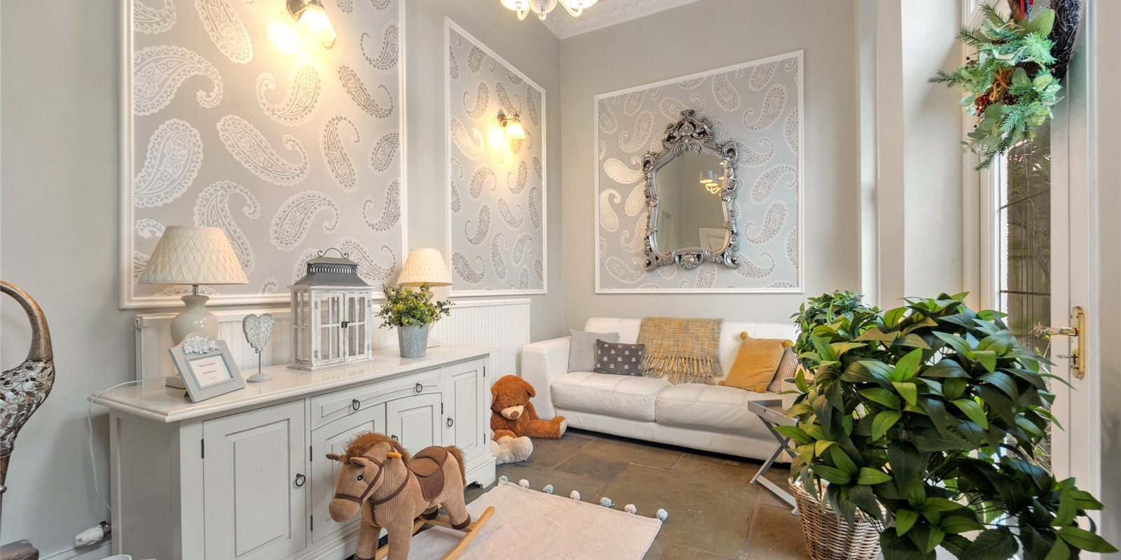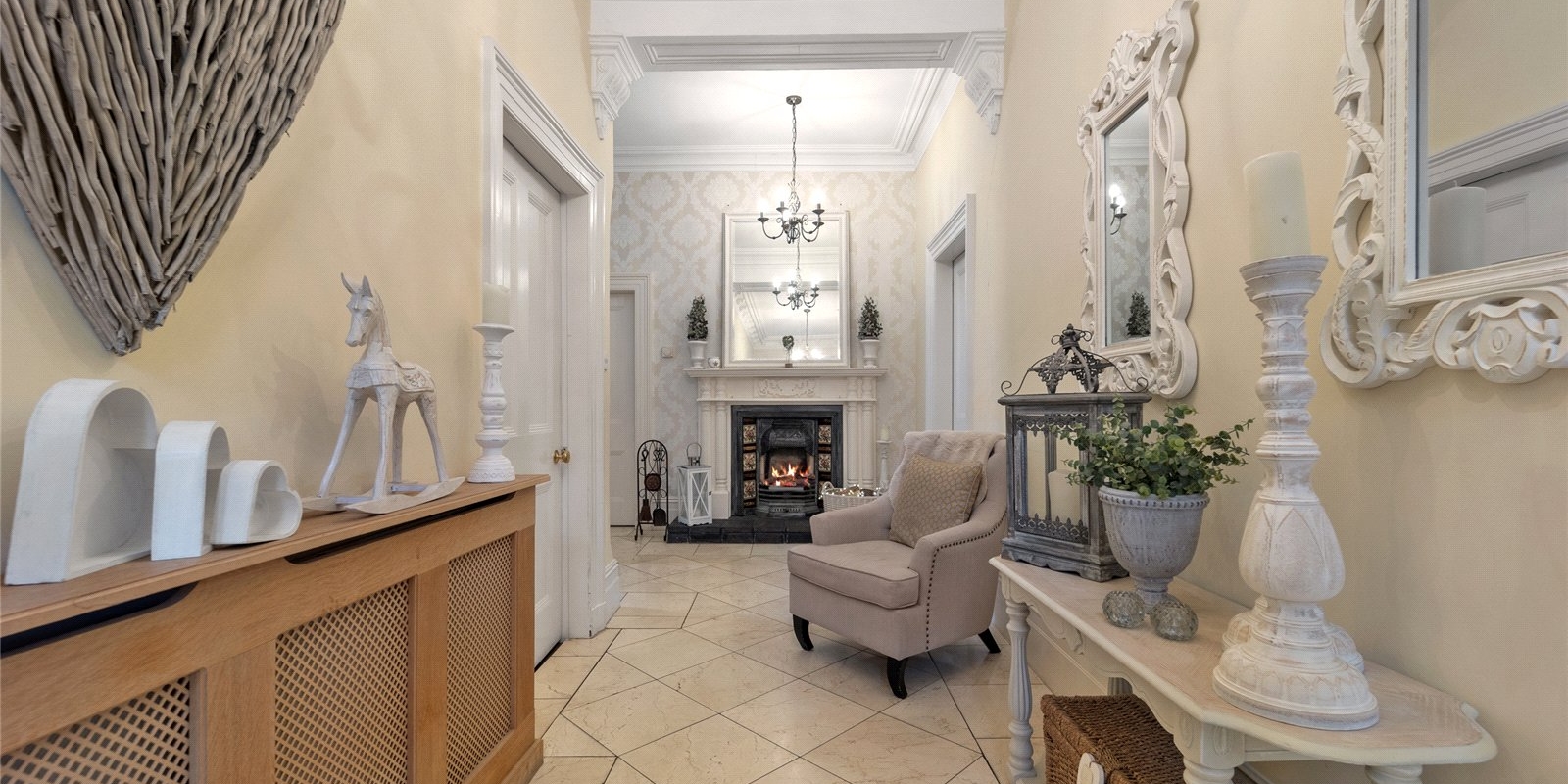 From the moment you step inside, the property exudes charm and sophistication. Original stained glass features, decorative wall panelling, and large light-filled windows create an atmosphere of understated luxury, while the interiors have been thoughtfully curated with tasteful décor and high-quality finishes throughout.