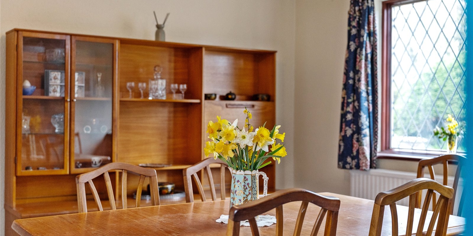 The cottage itself retains a wealth of original features, with the dining room being a particular highlight. Here, a beautiful exposed fireplace forms a striking focal point, evoking the property’s rich past and offering a glimpse into its centuries-old story. Throughout the home, there is a warm sense of authenticity and character that simply cannot be replicated in modern builds.
