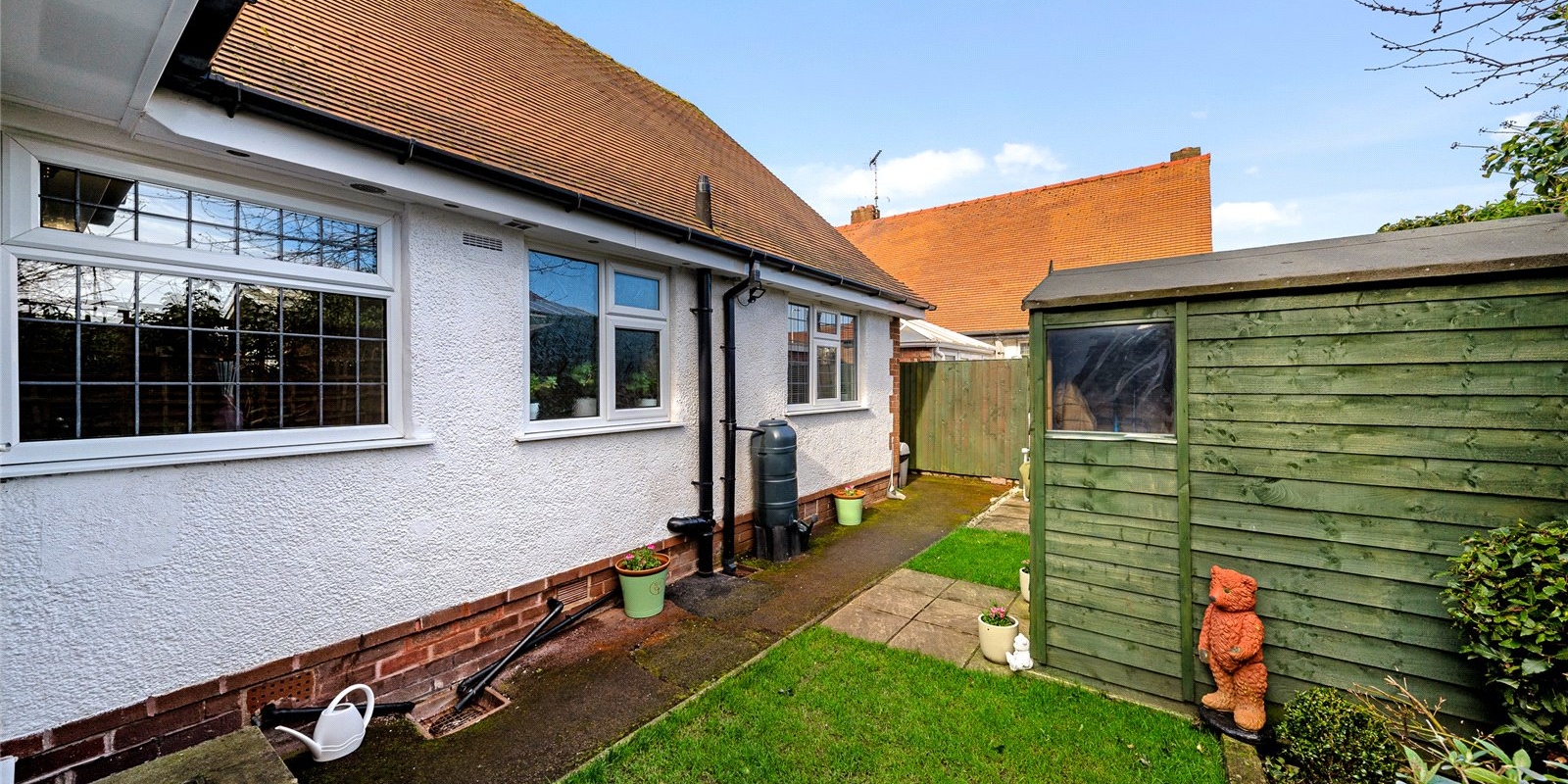 Externally, the property continues to impress. To the front, it is set back from the road, enhancing privacy and security, with ample space for off-road parking and potential for a garage (subject to planning). To the rear, you will find a well-maintained garden, featuring a combination of lawn, patio seating areas, and established planting – perfect for enjoying outdoor living.