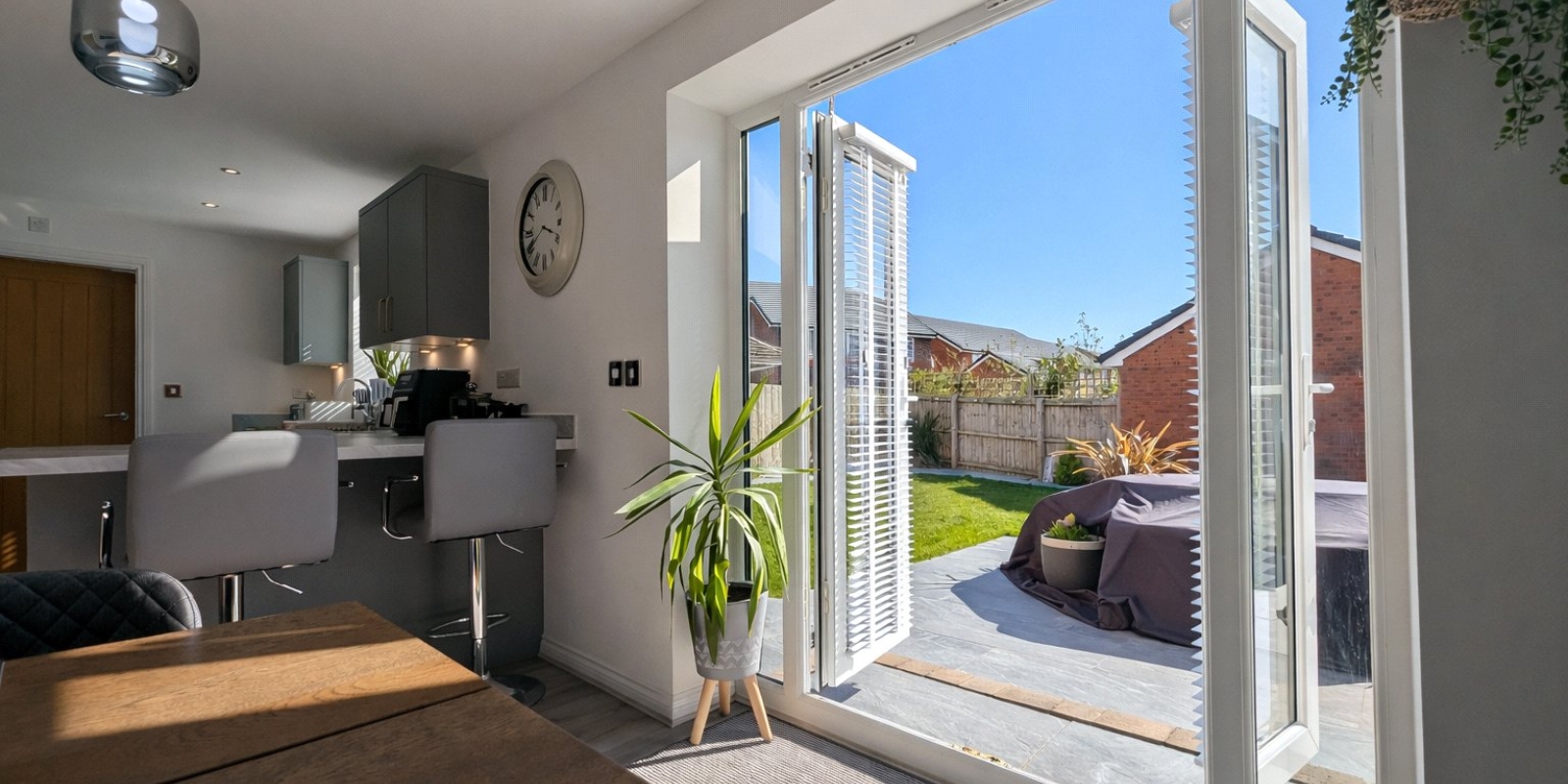 The property opens into a welcoming entrance hallway with useful storage, leading through to a spacious and well-proportioned lounge, providing a bright and comfortable living environment. To the rear, the open-plan kitchen and dining room has been thoughtfully improved with the addition of a modern kitchen island, creating a highly sociable and practical space ideal for both everyday living and entertaining.