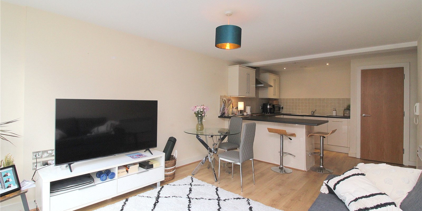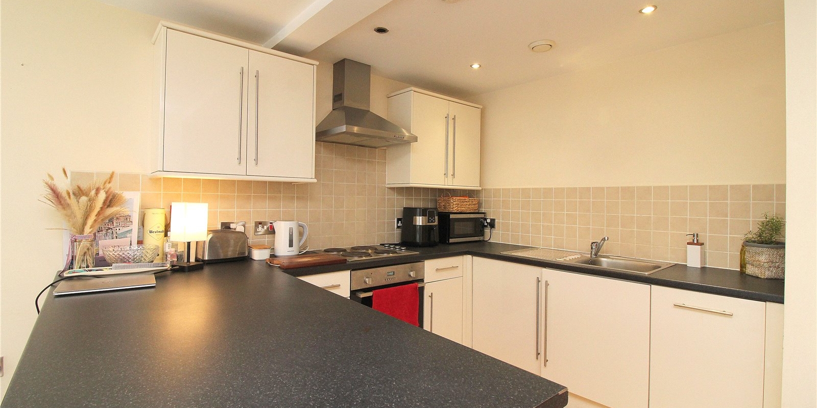 The property is available with no onward chain, a secure car parking space for residents only and briefly comprises; secure communal entrance hall with intercom entry system, lift and stairs to all floors, entrance hall with storage, open plan lounge/kitchen with integrated appliances, two double bedrooms and a modern three piece family bathroom. Accessed via the lounge is a generous L shape balcony, ideal for al fresco dining. Internal inspection comes highly recommended by the agent. NO CHAIN.