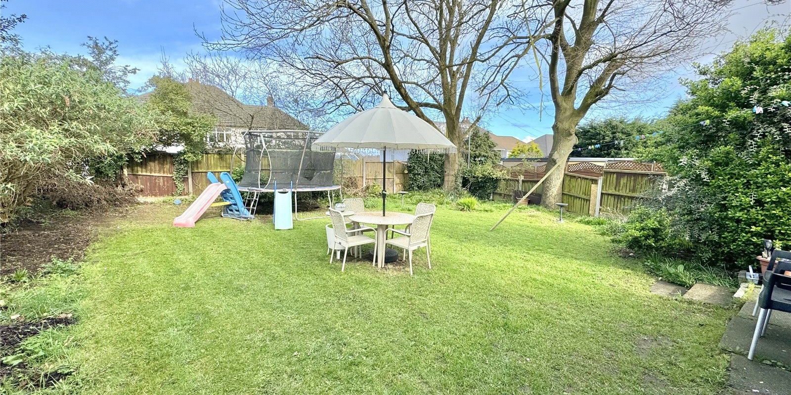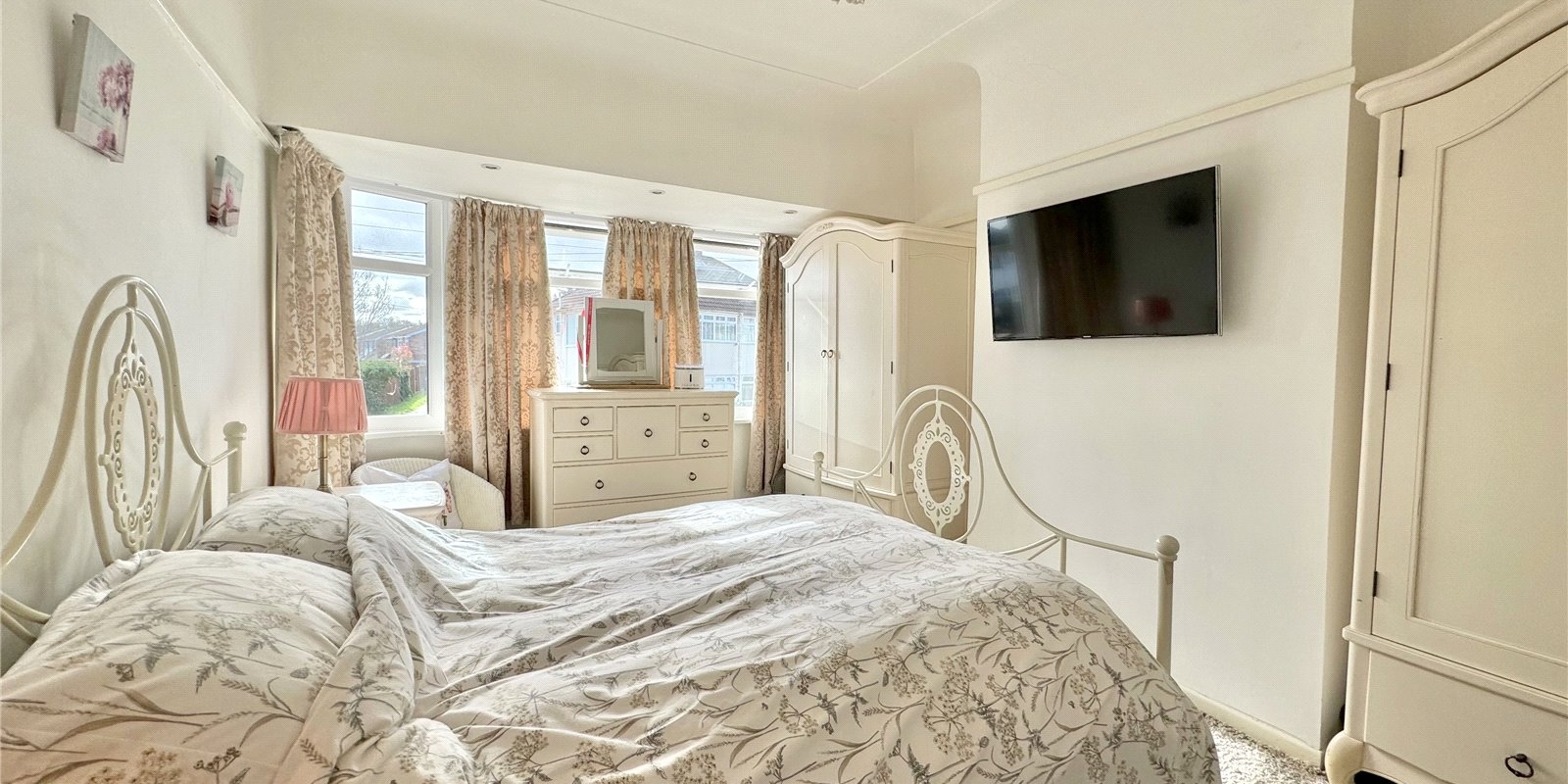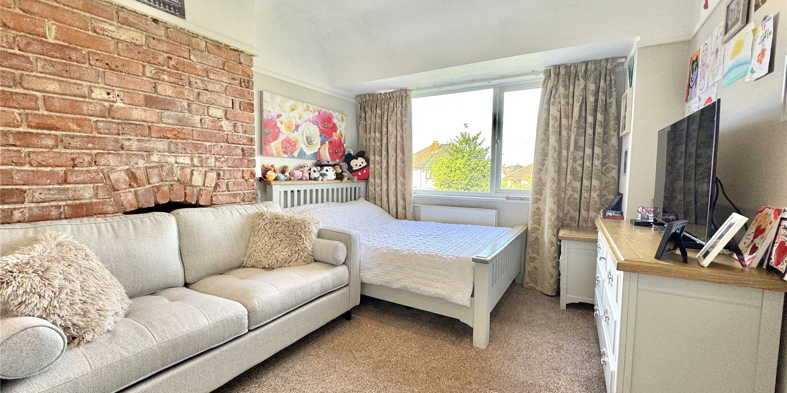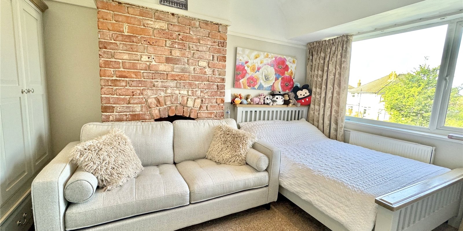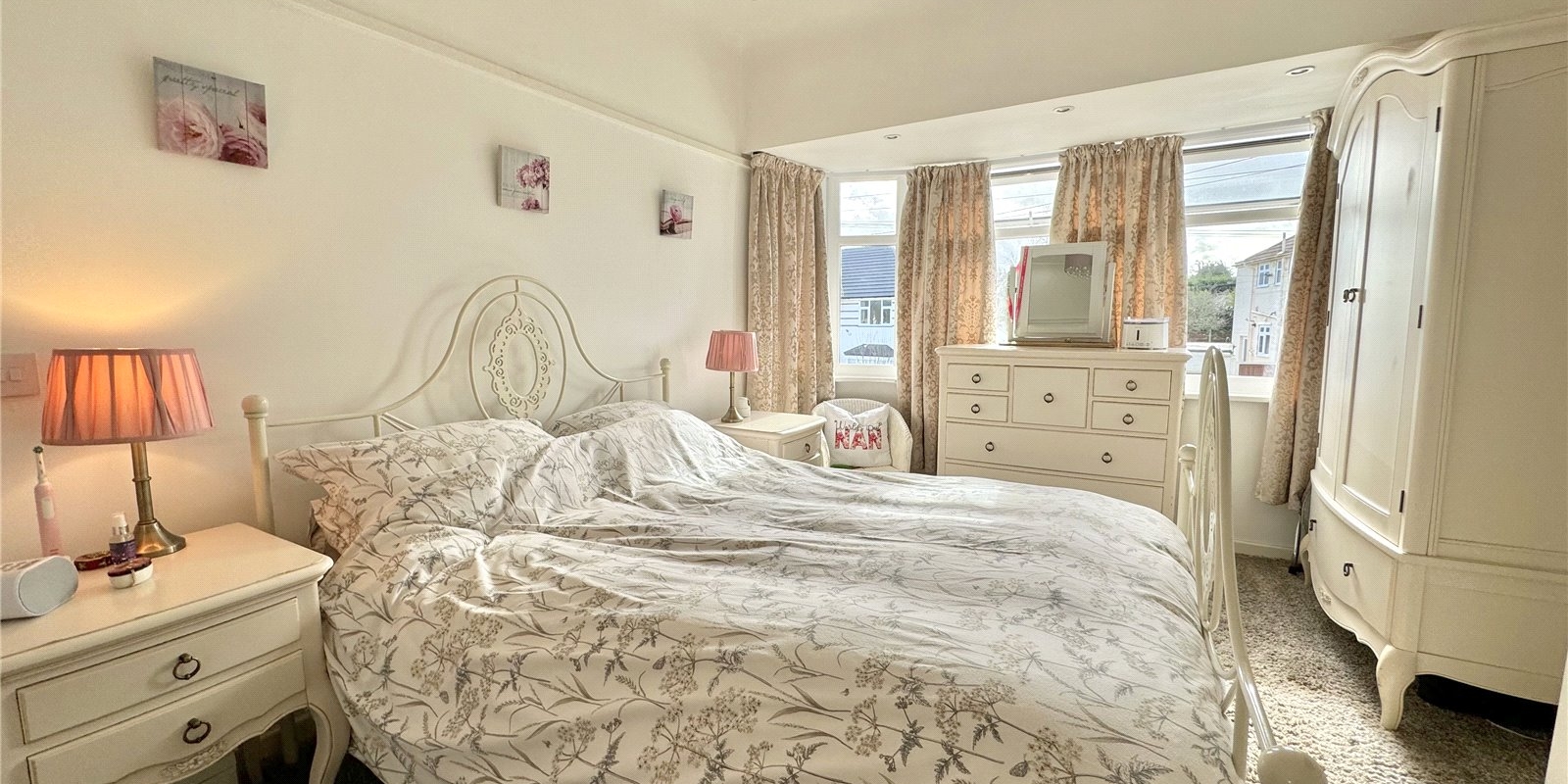The property is approached via a driveway for off road parking. Upon entering, you are greeted by a welcoming entrance hall which provided access to a generous front facing living room with bay windows complete with fireplace, the dining room is rear facing and has a feature fireplace with doors leading out onto the beautiful garden. There is a fully fitted kitchen, with plenty of cupboard space, and built in appliances..