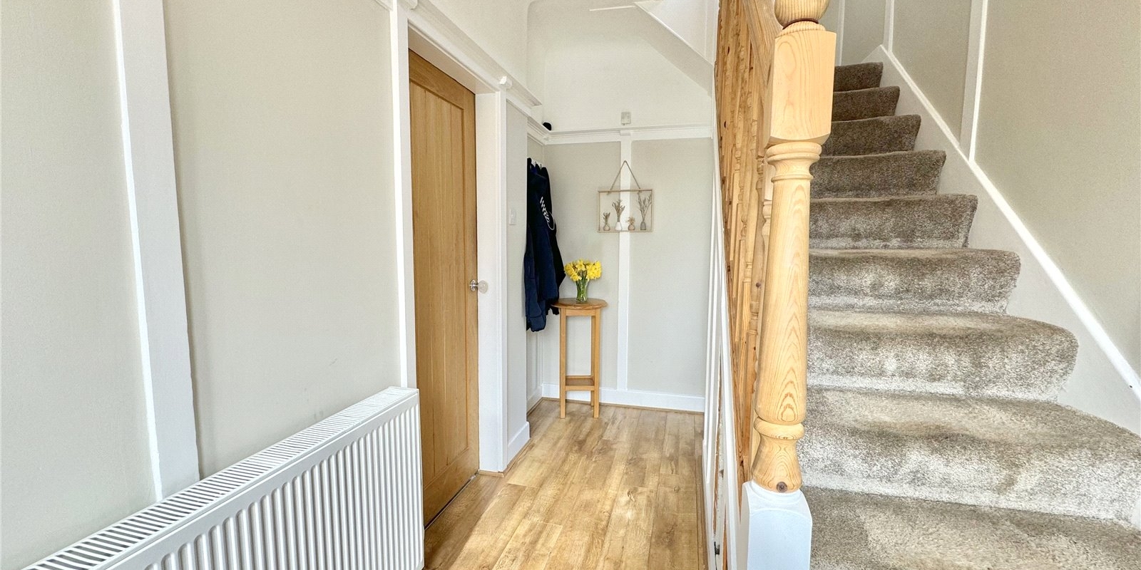 On the first floor, you are greeted by three bedrooms, two of which are double, and a fully tiled four-piece family bathroom, with bath, stand alone shower, WC and sink.