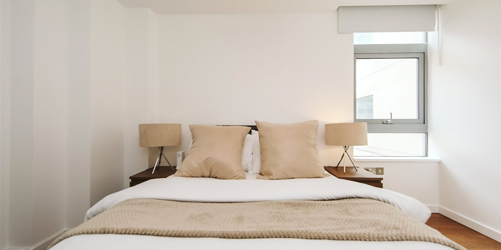 Both bedrooms are generously sized, with the master benefiting from built-in storage and en-suite. The sleek bathroom is finished to a high standard, and the property includes secure entry, lift access, and 24-hour concierge service.