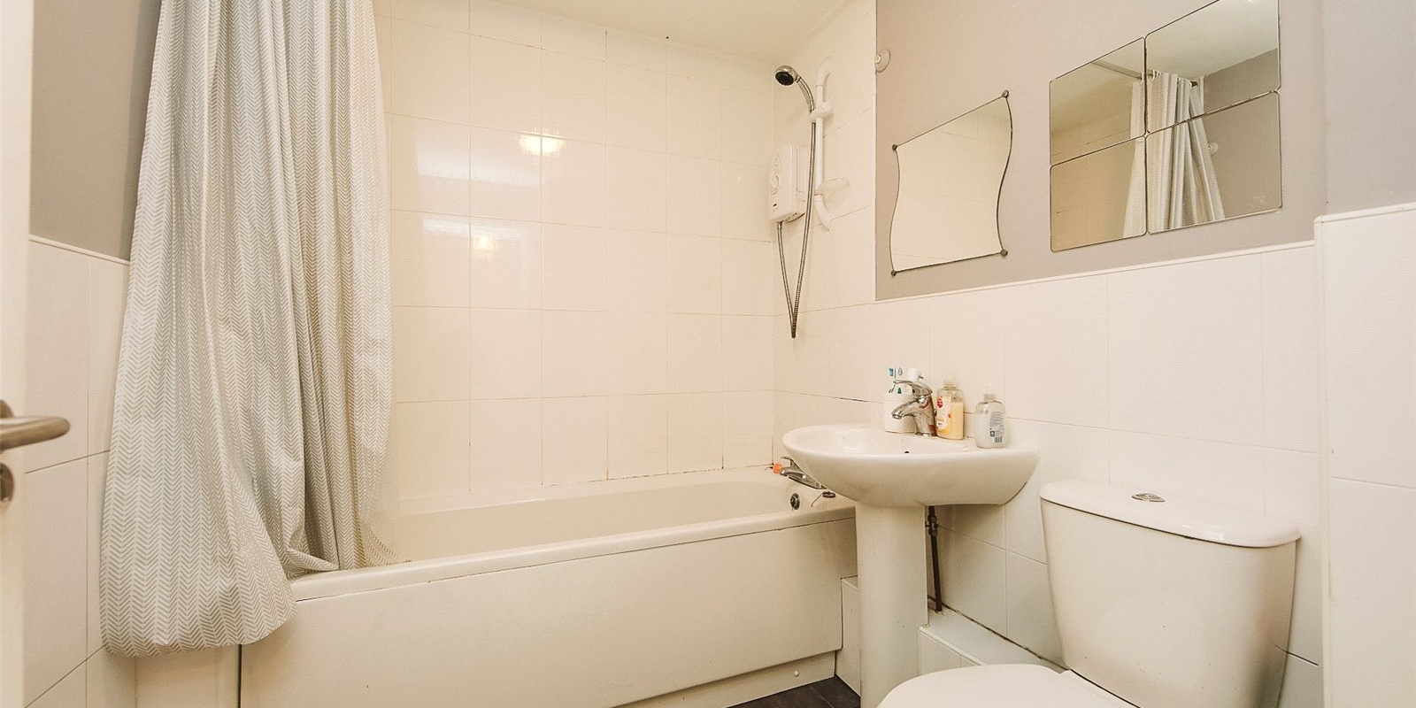 Spacious family-sized bathroom with modern fittings, full-size bath, and shower over bath