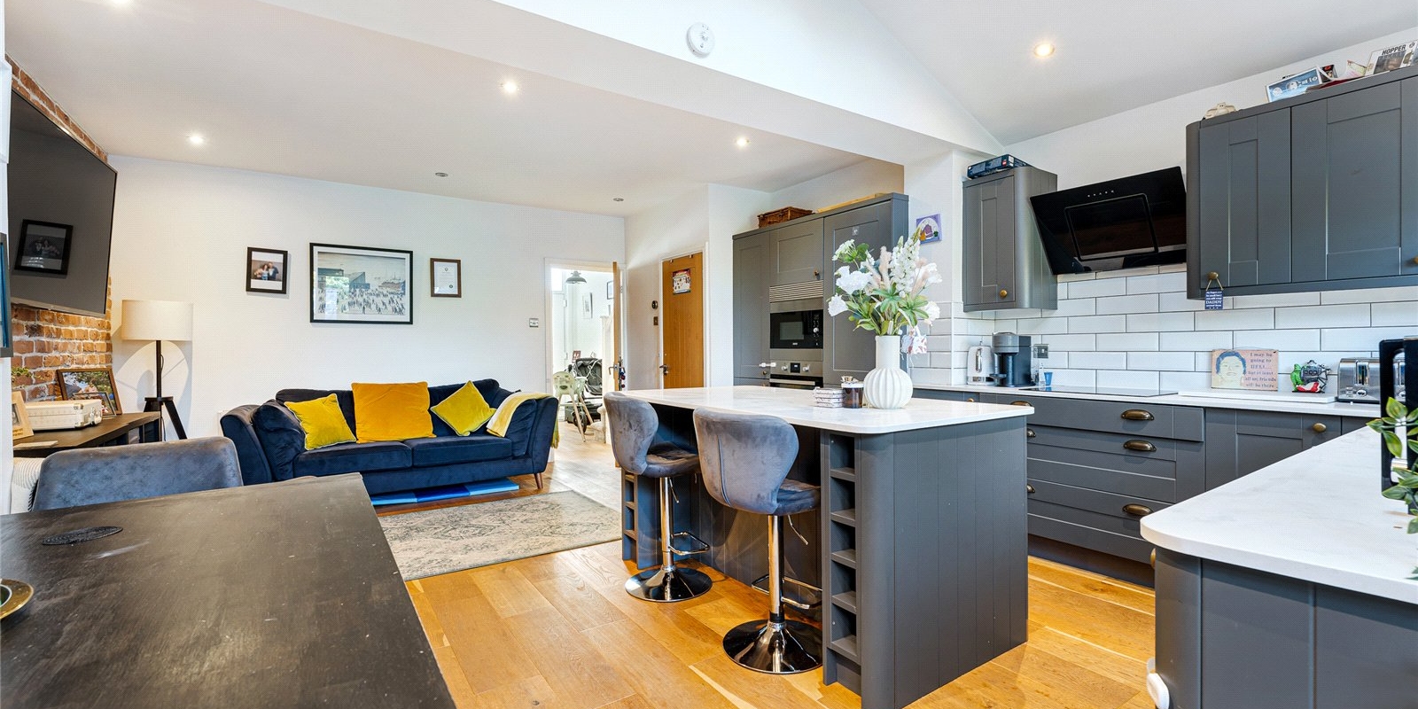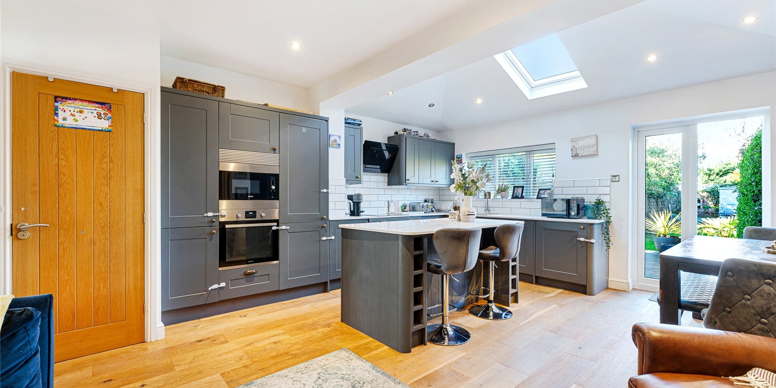 Upstairs, the property offers three well-proportioned bedrooms, each providing comfortable accommodation for families, guests or homeworking. A modern family bathroom completes the first floor, finished to a high standard and designed for everyday convenience.