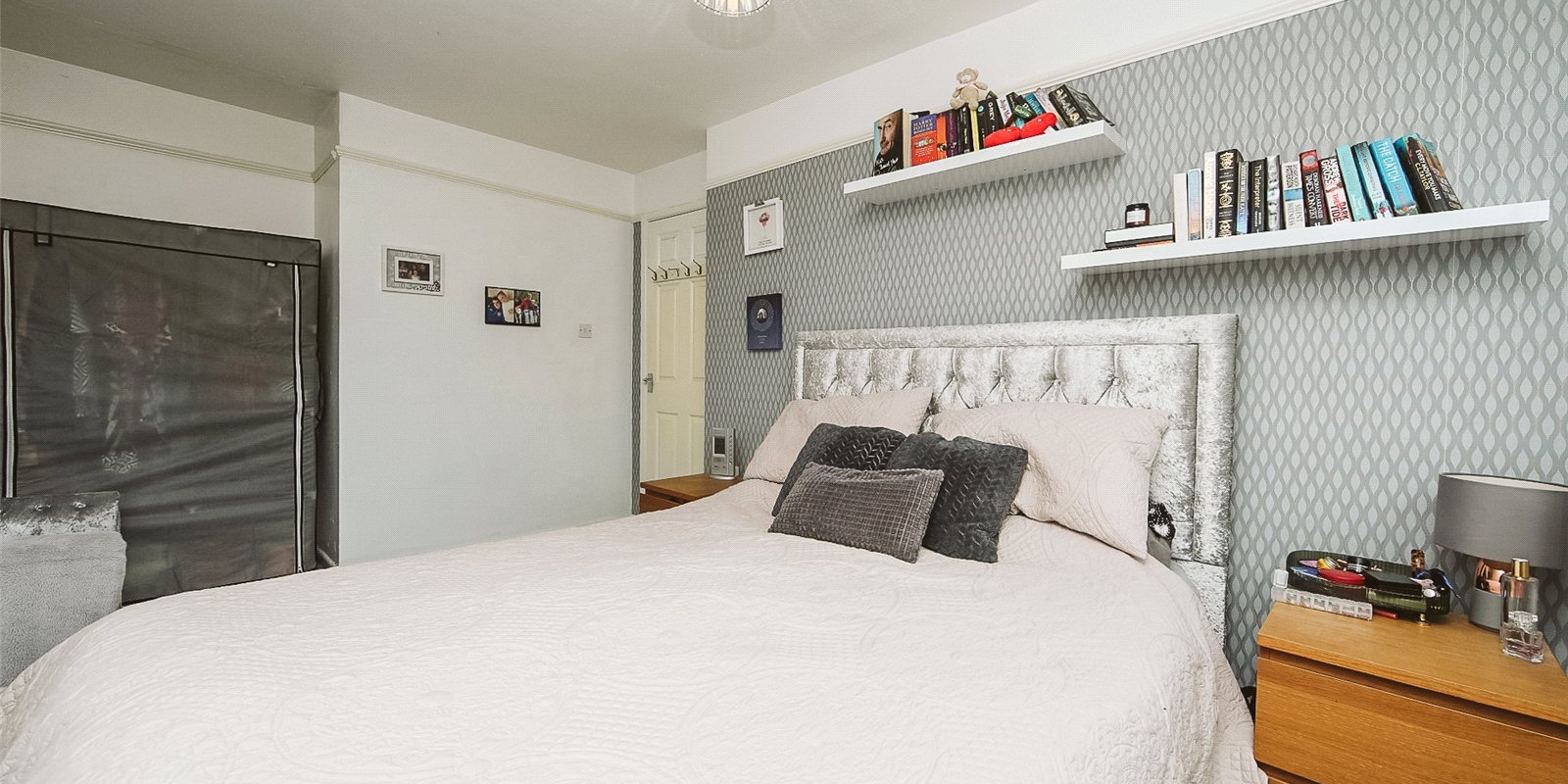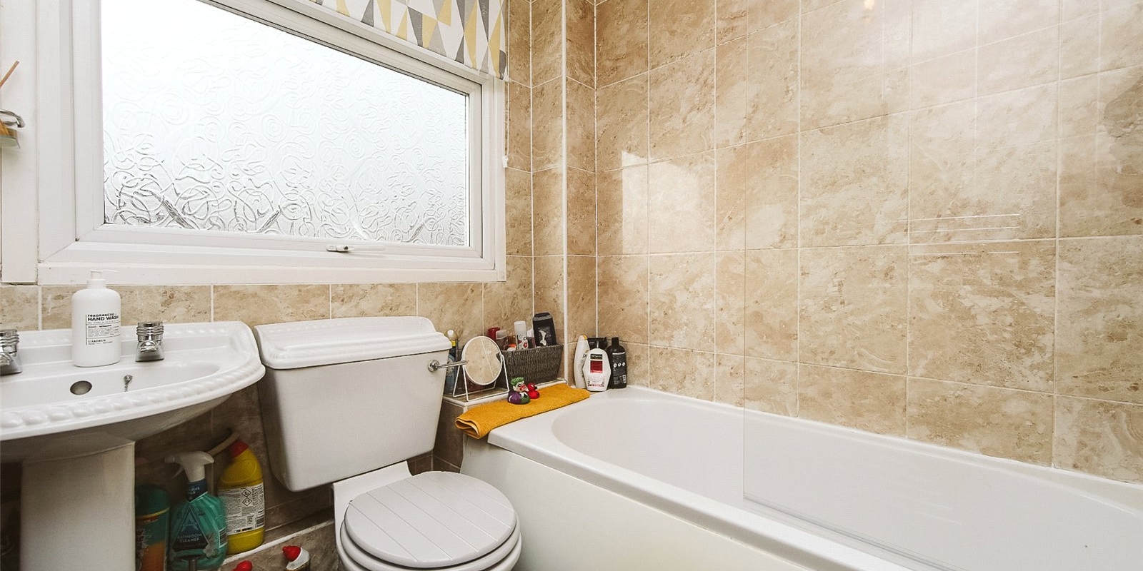 Upstairs, the property features two spacious double bedrooms and a third single bedroom, ideal for use as a nursery, home office, or guest room. The family bathroom is finished with a contemporary three-piece suite and elegant tiling.