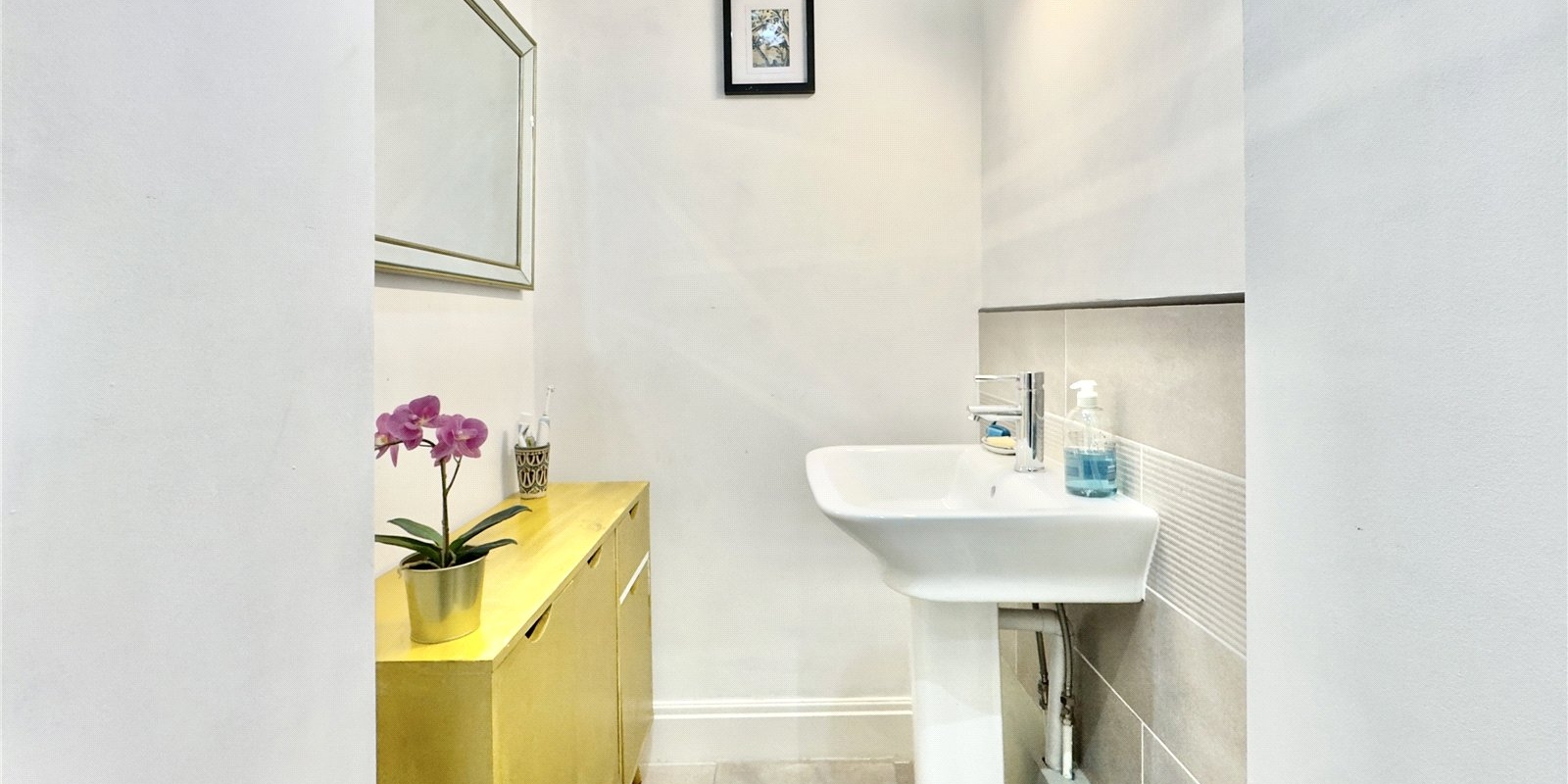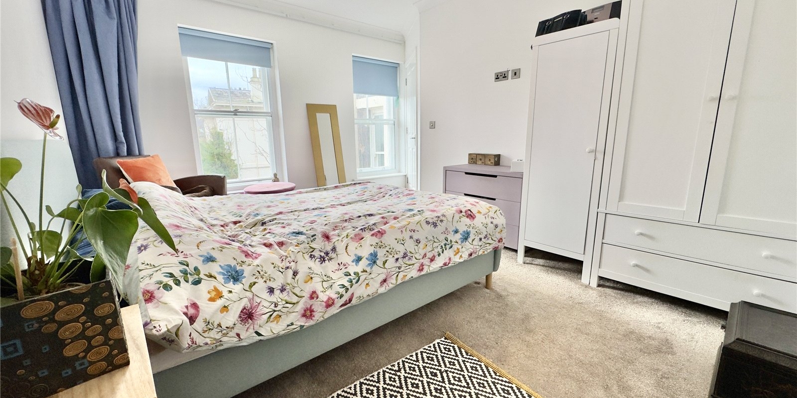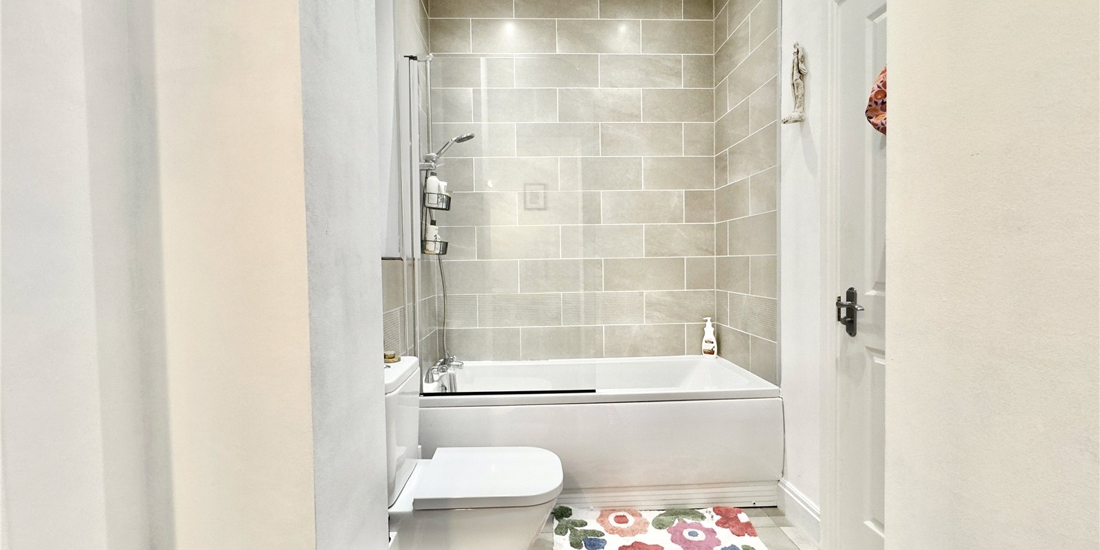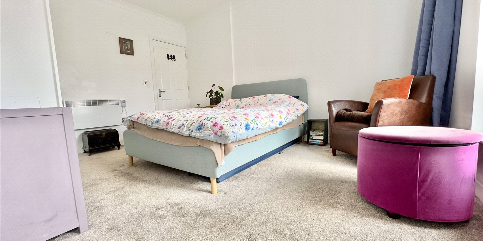Both bedrooms are well-proportioned, with the principal bedroom offering a notably generous footprint. The second bedroom is versatile and can comfortably accommodate a small double bed, making it ideal as a guest room, home office or nursery. A contemporary bathroom sits off the hallway, finished in a clean, neutral style to suit a variety of tastes.