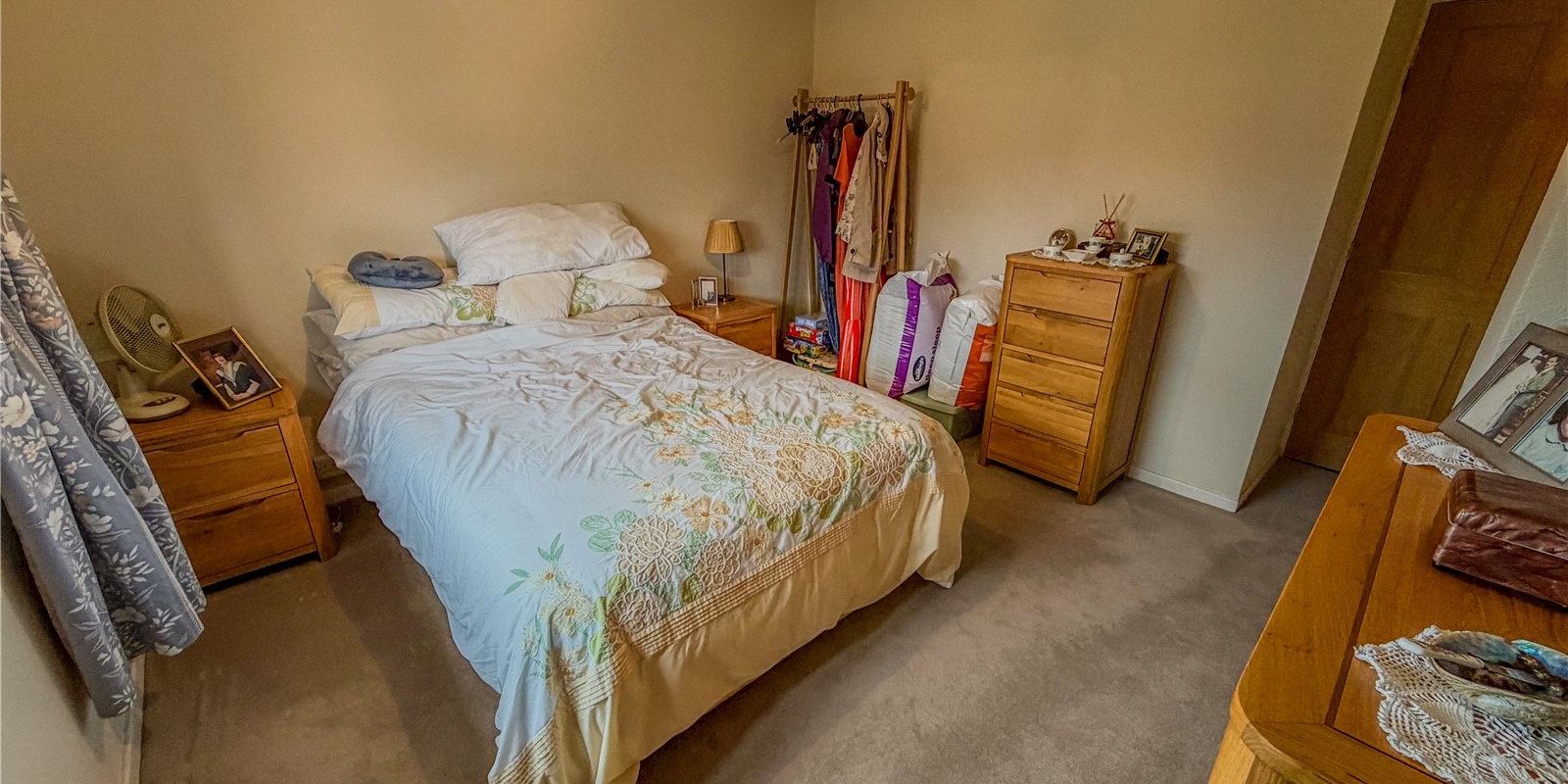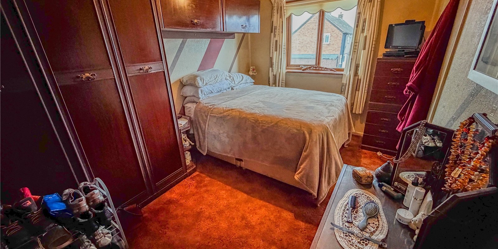 Upstairs, the property features three well-proportioned bedrooms. The main bedroom is a generous double, while the second bedroom also accommodates double furnishings comfortably. The third bedroom works well as a child’s room, study or dressing room, giving buyers flexibility depending on their lifestyle. The family bathroom includes a three-piece suite and provides a clean, functional environment with room for updating to personal taste.