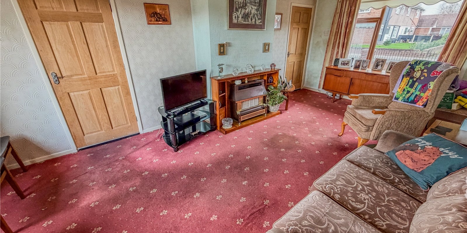To the rear, the kitchen provides a practical and functional space with plenty of scope for personal touches. It offers direct access to the garden, creating a natural flow between indoor and outdoor areas and making it convenient for day today use. The layout lends itself well to future improvement should a buyer wish to enhance or reconfigure the space over time.