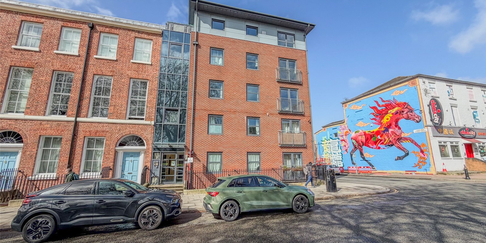 The building itself enjoys a central position within Liverpool’s Chinatown district, surrounded by an eclectic mix of restaurants, cafés, cultural landmarks, and excellent transport links. With Liverpool Lime Street and Central Station both within easy reach, the apartment offers effortless access across the city and beyond.