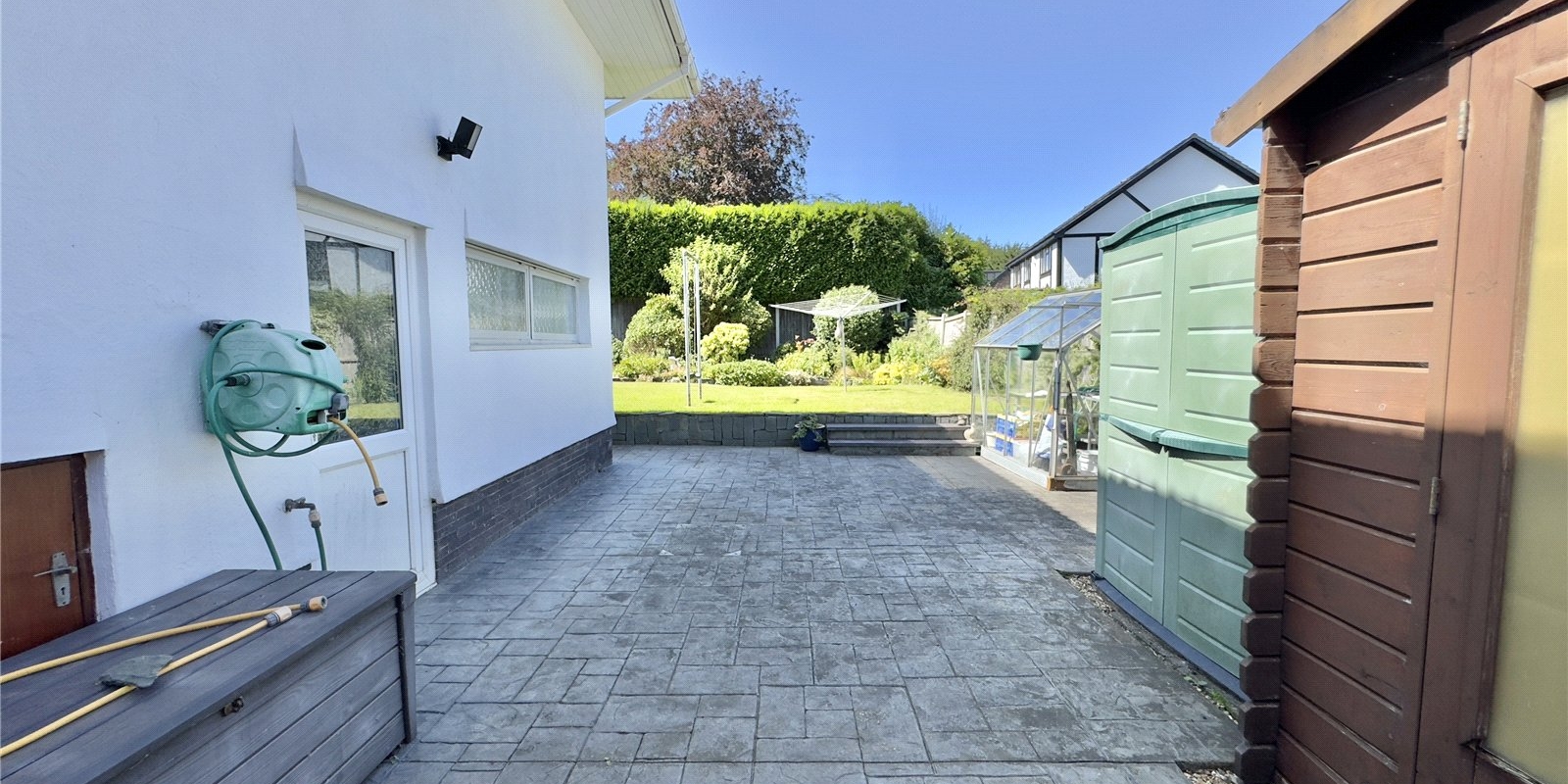 Externally, the home sits on a substantial plot with a large in-and-out driveway to the front providing ample parking, in addition to a double garage with an electric door. To the side of the property lies a generous lawned garden, while the rear offers another well-kept lawned area. A private paved courtyard provides a secluded spot for relaxing or al fresco dining, and an additional paved section on the opposite side of the home adds even more versatility to the outdoor space. There is a lovely covered patio area perfect for entertaining. You also have an external workshop shed with power and lighting, along with a greenhouse.