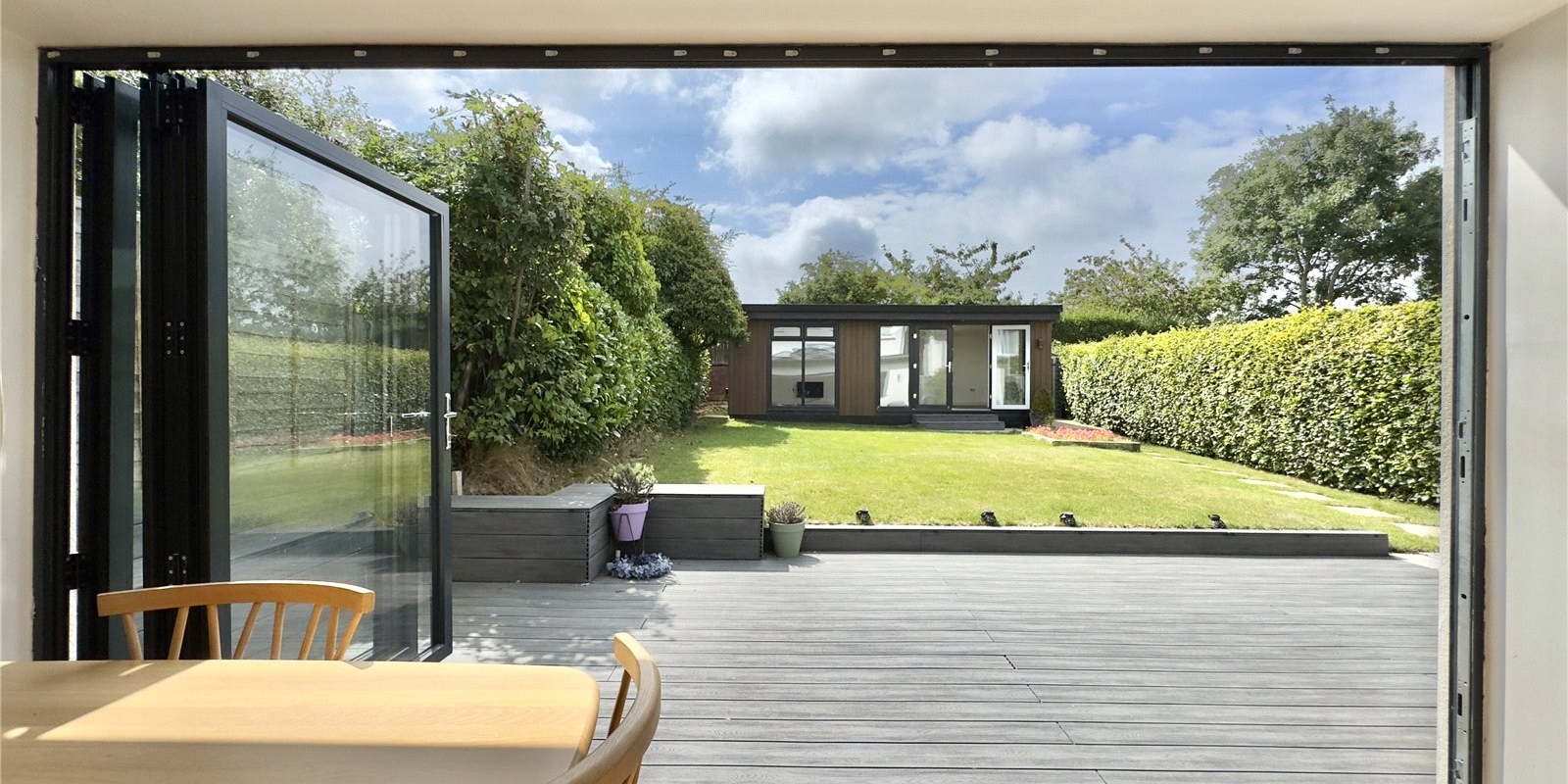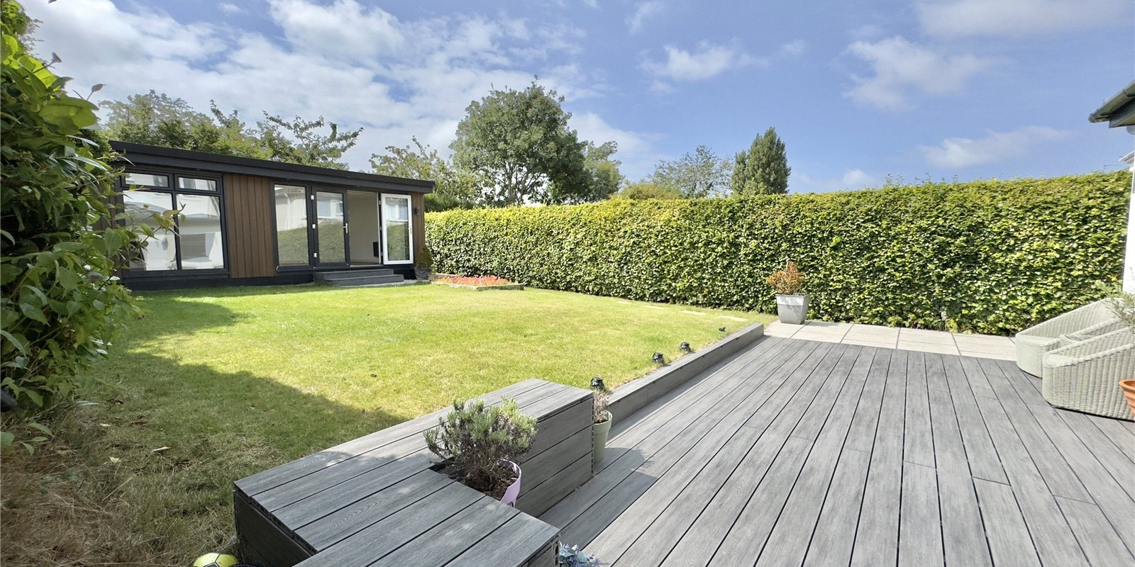 Outside, the property continues to impress with a fantastic rear garden that includes a spacious patio area, a neatly maintained lawn, and a flagged path leading to a fully equipped garden office or outside reception room. Complete with electrics, this separate space is ideal for remote working, hobbies, or a tranquil escape.