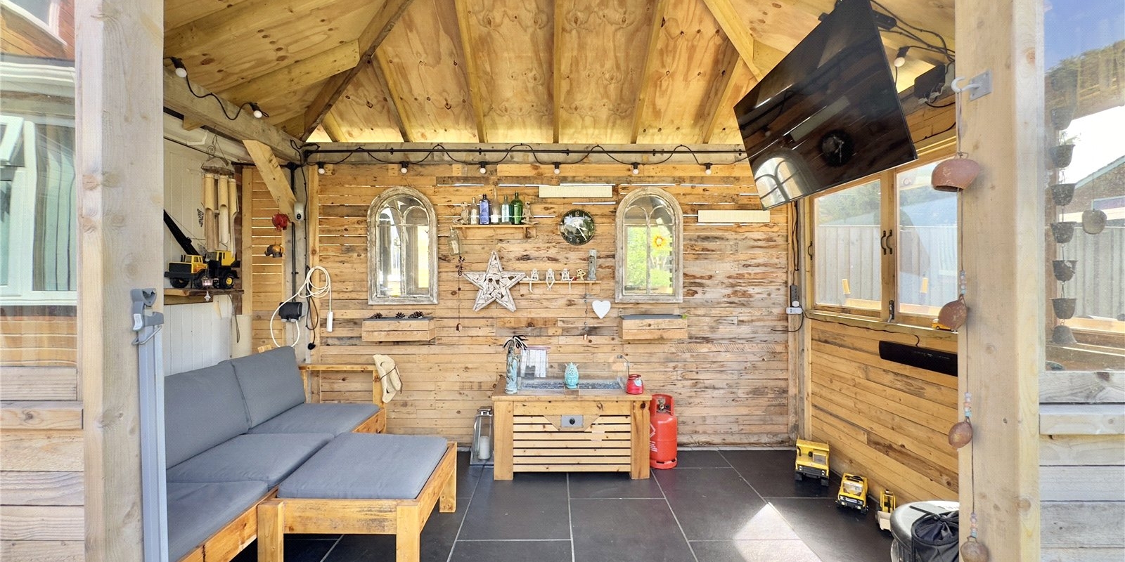 Upon entering, you’re welcomed by a spacious entrance porch leading into a generous hallway. The ground floor features a bright and airy lounge/diner, complete with a charming wood burner and sliding patio doors that open directly onto the sunny, landscaped rear garden. The modern kitchen/diner is thoughtfully designed, perfect for both everyday living and entertaining. Just off the kitchen is an outdoor utility room that conveniently connects the main house to the garage.