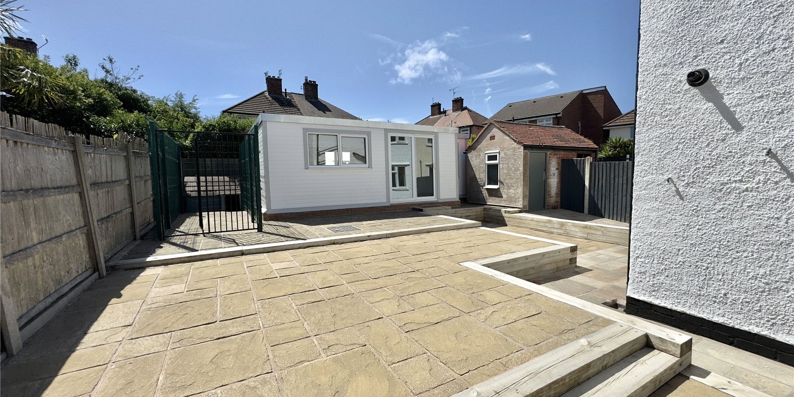 Outside, the front garden enhances the home’s kerb appeal, while a substantial space to the side of the property offers potential for future extension or the creation of off-road parking, subject to planning permission. The rear garden has been designed for low maintenance, mostly paved and featuring a built-in sunken fire pit — perfect for entertaining. At the bottom of the garden sits a large garden room, fully insulated, double glazed, and complete with power and lighting, making it an ideal space for a home office, gym, or creative studio.