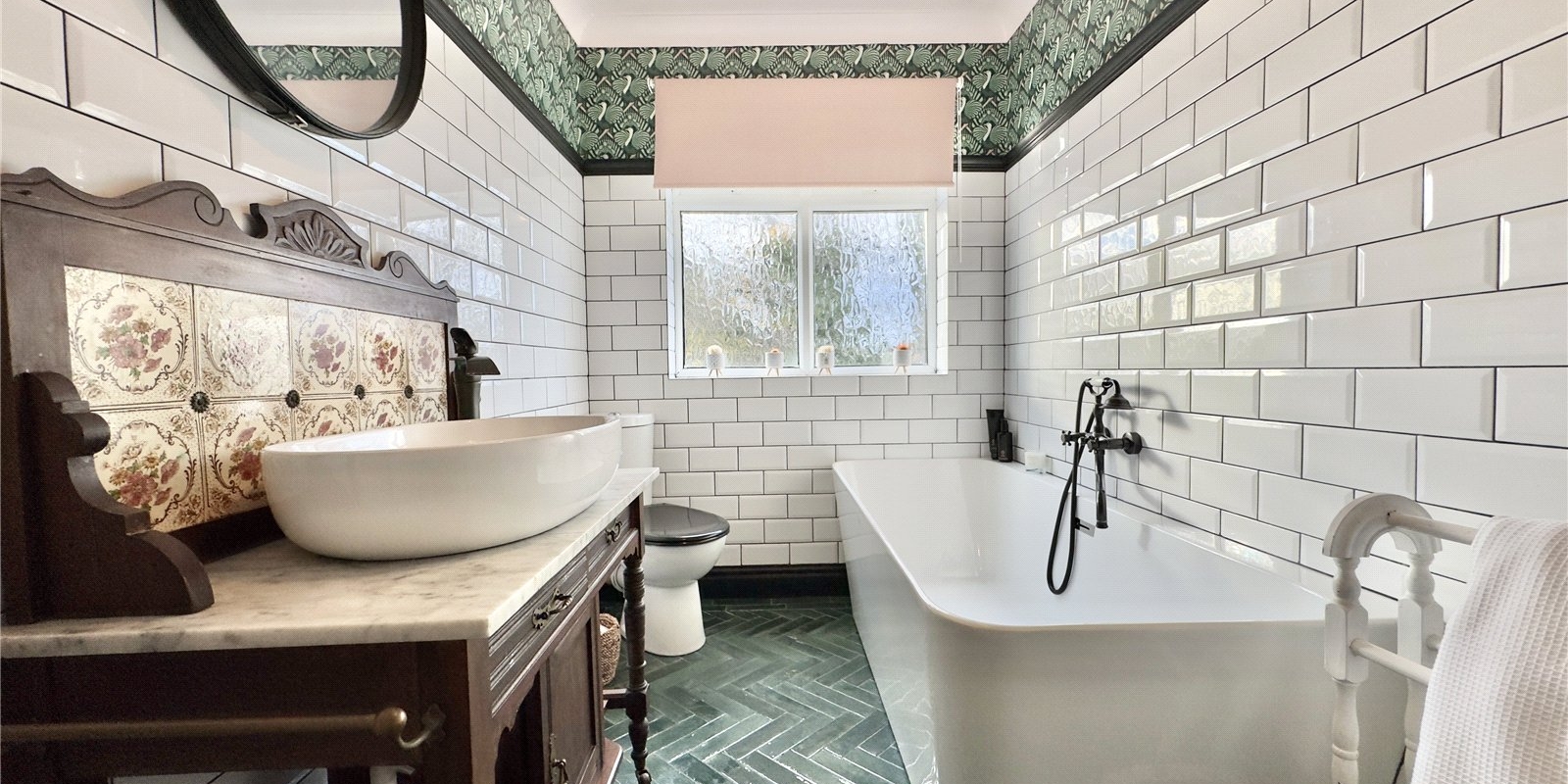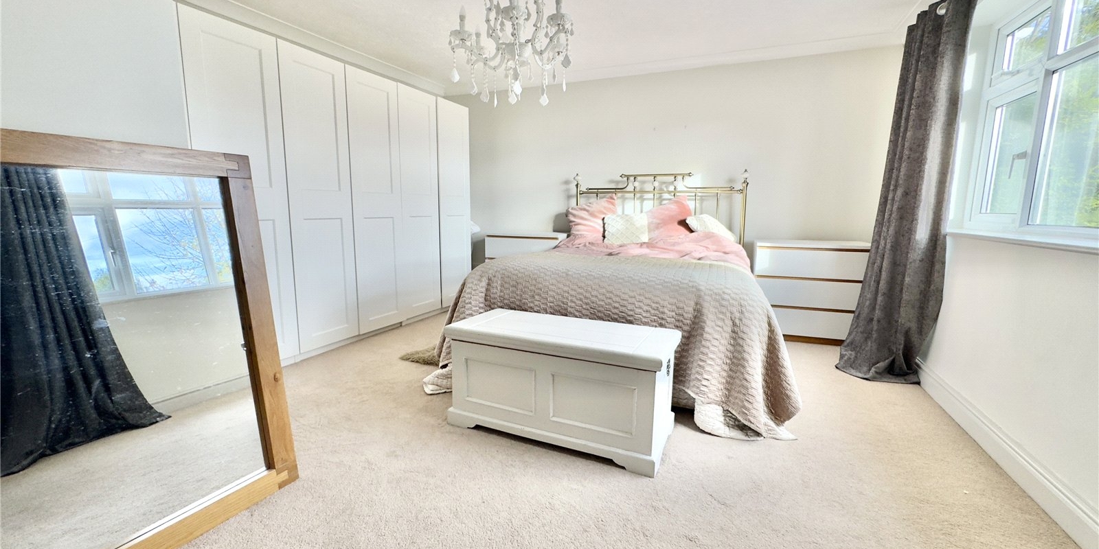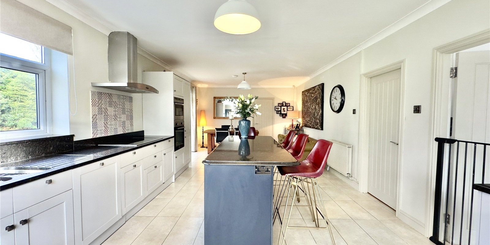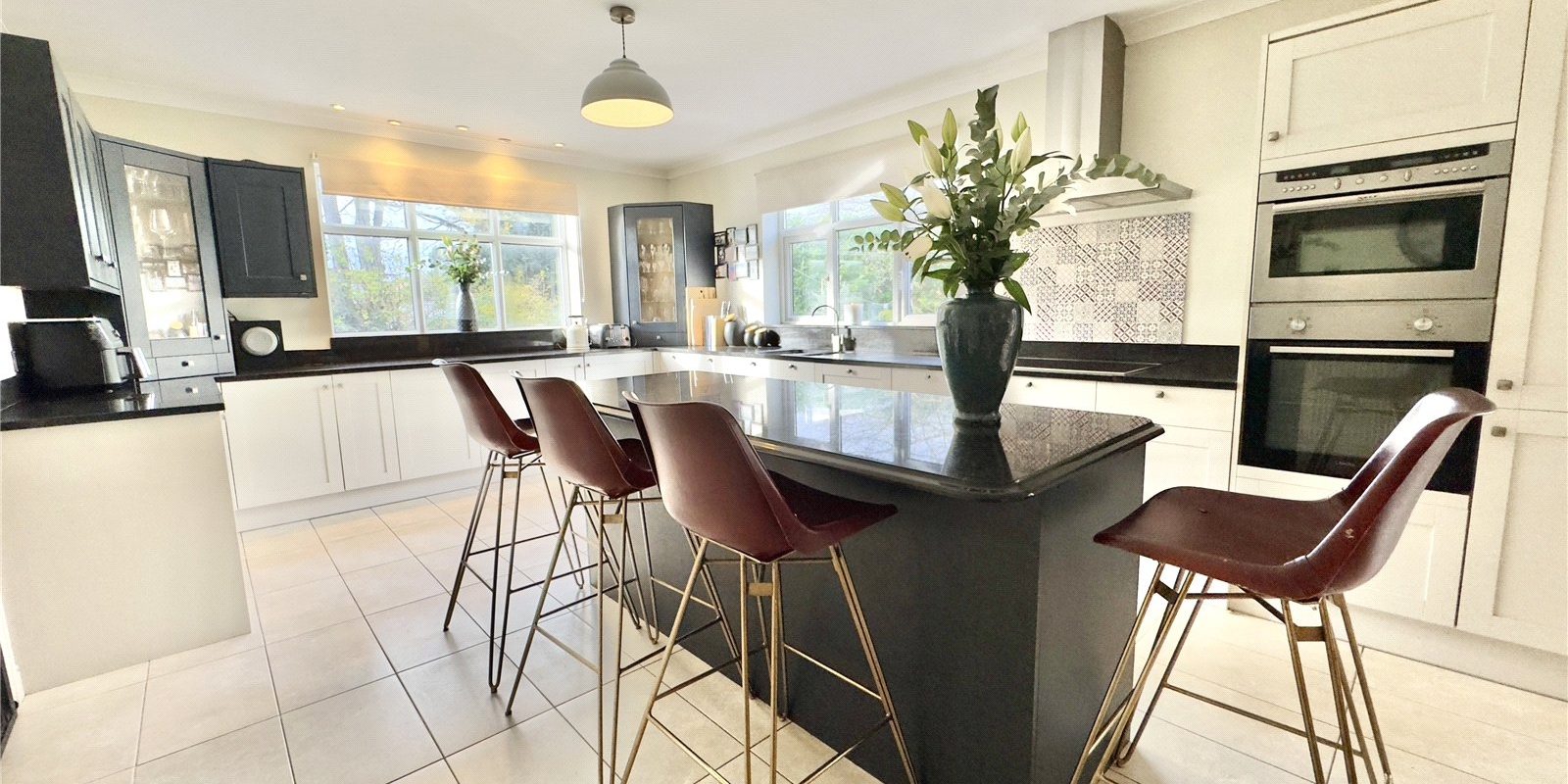 Upstairs, the property offers four double bedrooms and a generous single bedroom. The luxurious master suite includes a dressing room and a stylish four-piece en-suite bathroom. Two of the additional bedrooms also benefit from their own en-suite shower rooms, and there is a contemporary family bathroom to serve the remaining rooms.