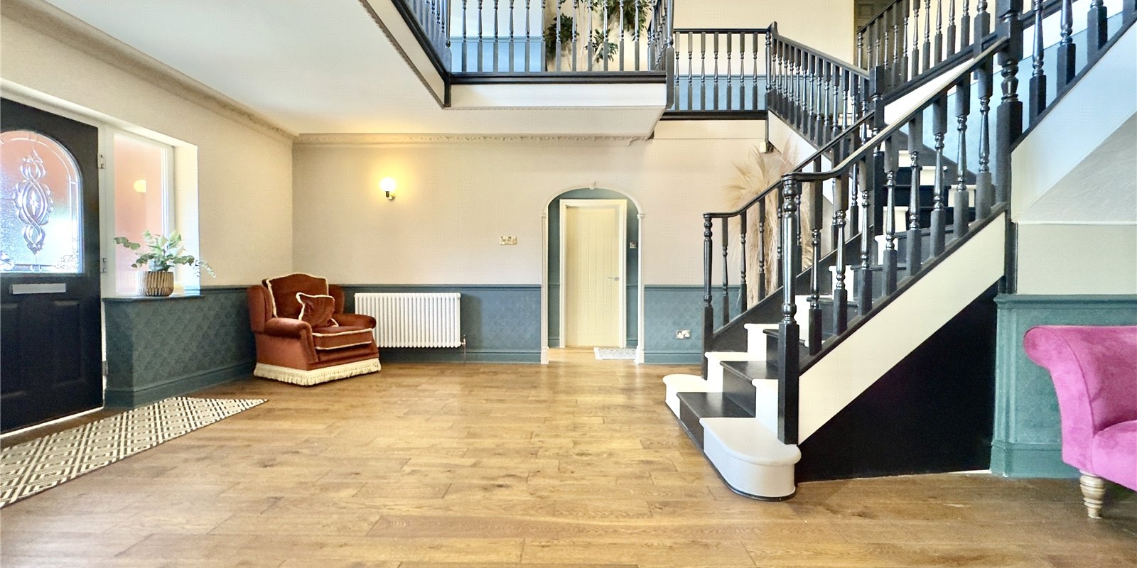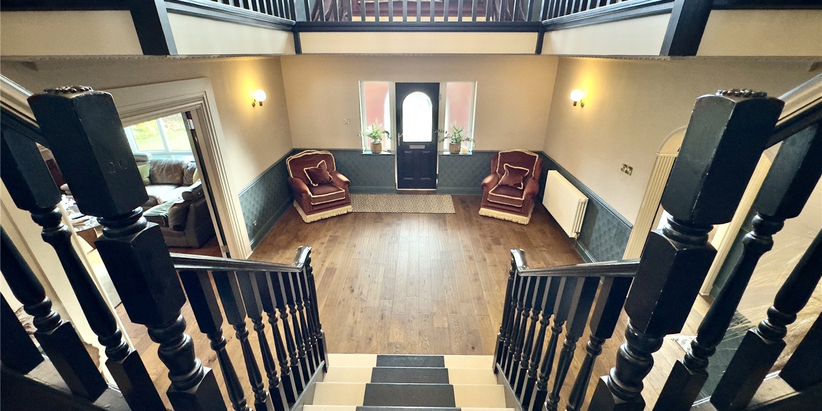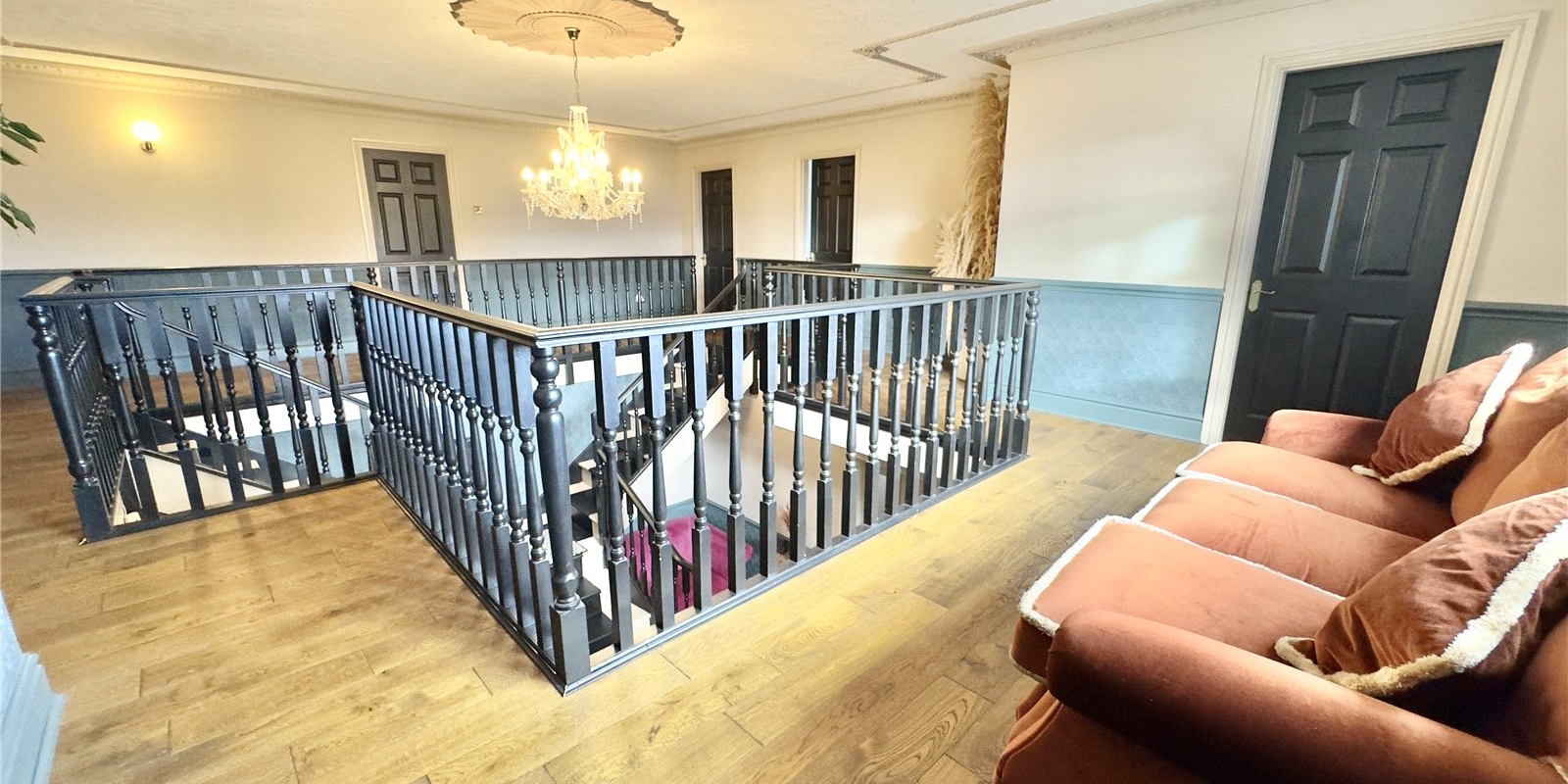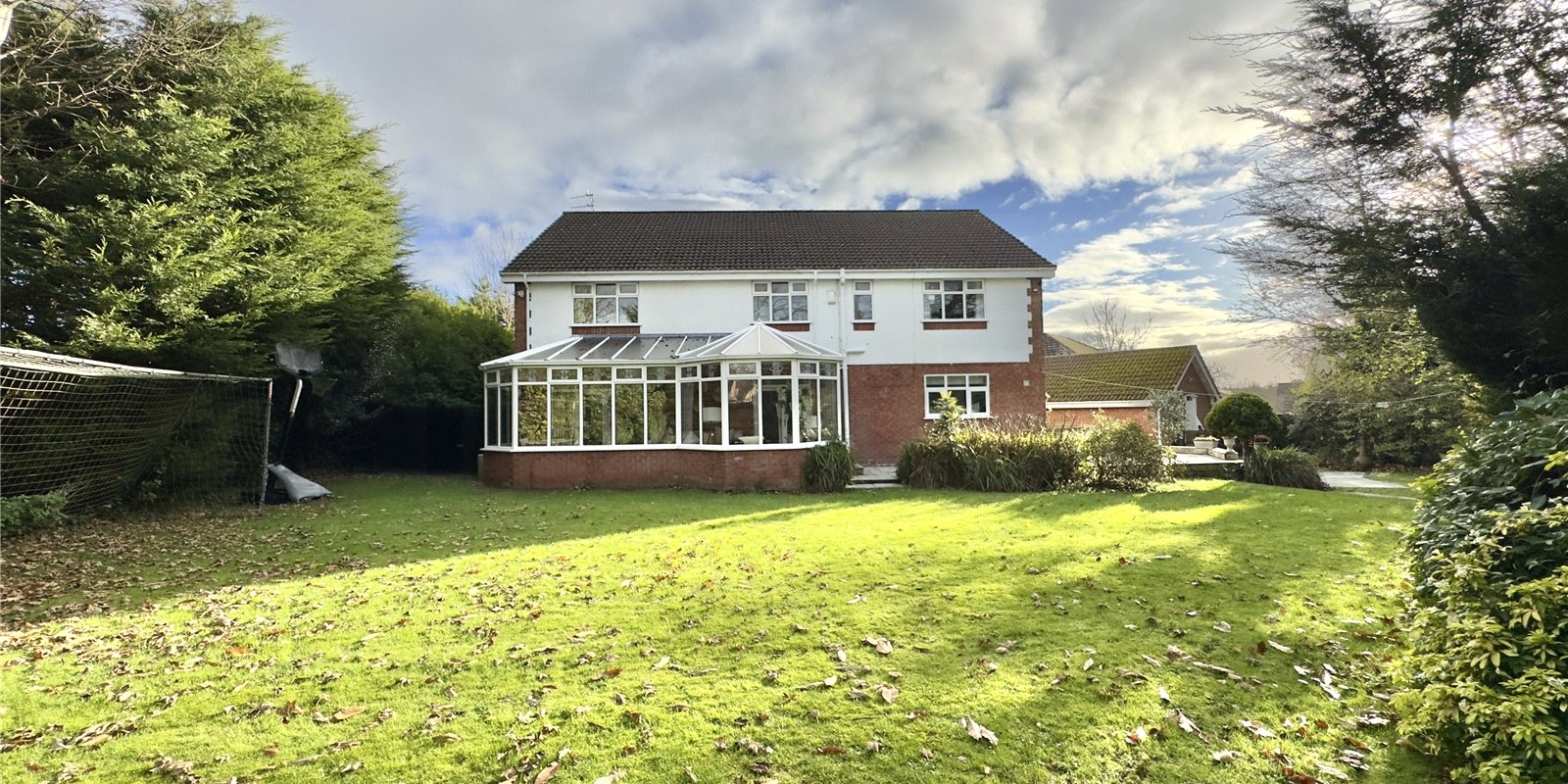 Upon entering, you are welcomed by a grand reception hallway featuring an impressive staircase that leads up to a beautiful galleried landing. To the front of the property are two bright and inviting reception rooms, while the hallway also provides access to a spacious downstairs WC. The rear of the home opens into a large, modern kitchen-diner complete with a centre island, perfect for both everyday family living and entertaining. From here you can access the utility room, a substantial conservatory overlooking the garden, and a further reception room ideal for use as a lounge, playroom or office.