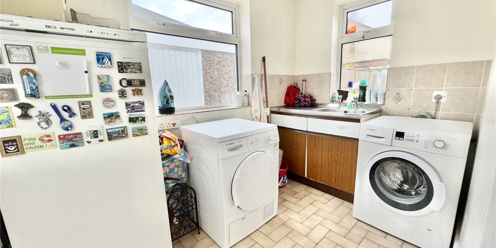 The ground floor accommodation comprises a welcoming porch and a large hallway, a bright bay-fronted lounge, and a separate dining room with French doors opening onto the rear garden. There is also a further reception room which leads into the kitchen, along with a practical utility room located just off the kitchen.