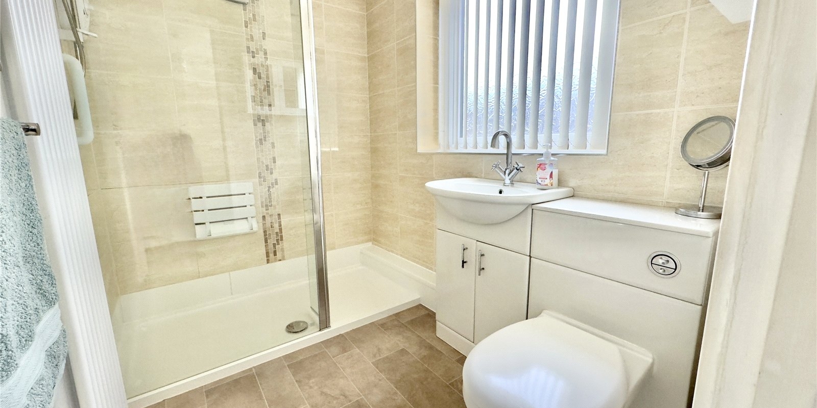 To the first floor, there are two double bedrooms, both benefiting from built-in storage, along with a well-proportioned single bedroom. The accommodation is completed by a shower room, presented in good condition.