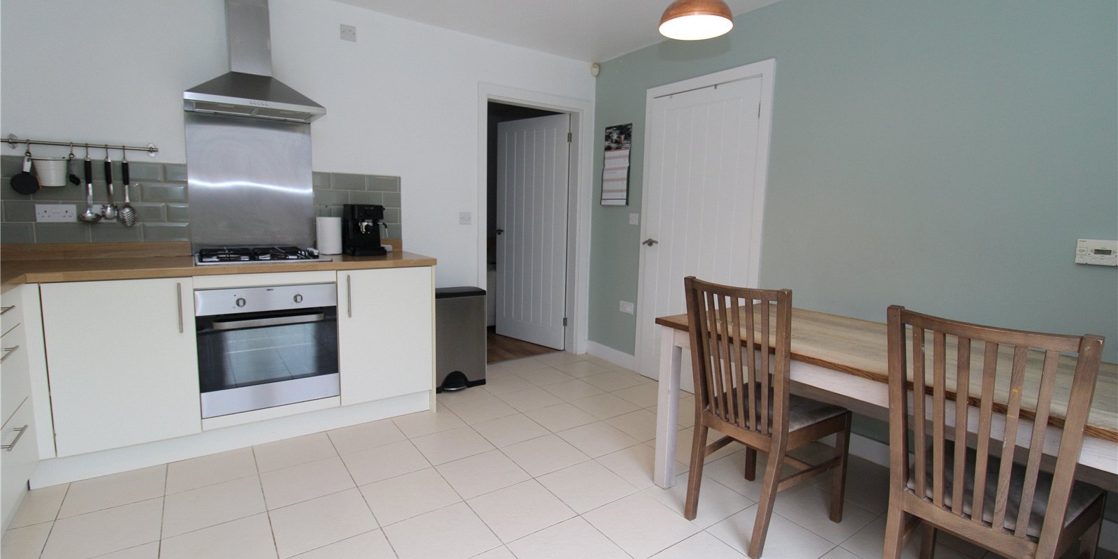 Inside, the accommodation is thoughtfully laid out. The ground floor comprises a welcoming entrance hallway leading into a generous living room, perfect for everyday comfort. To the rear, a contemporary dining kitchen provides a fantastic social space, complete with patio doors that open directly onto the garden, allowing plenty of natural light to flood in. A separate utility room and convenient downstairs WC complete the ground floor.