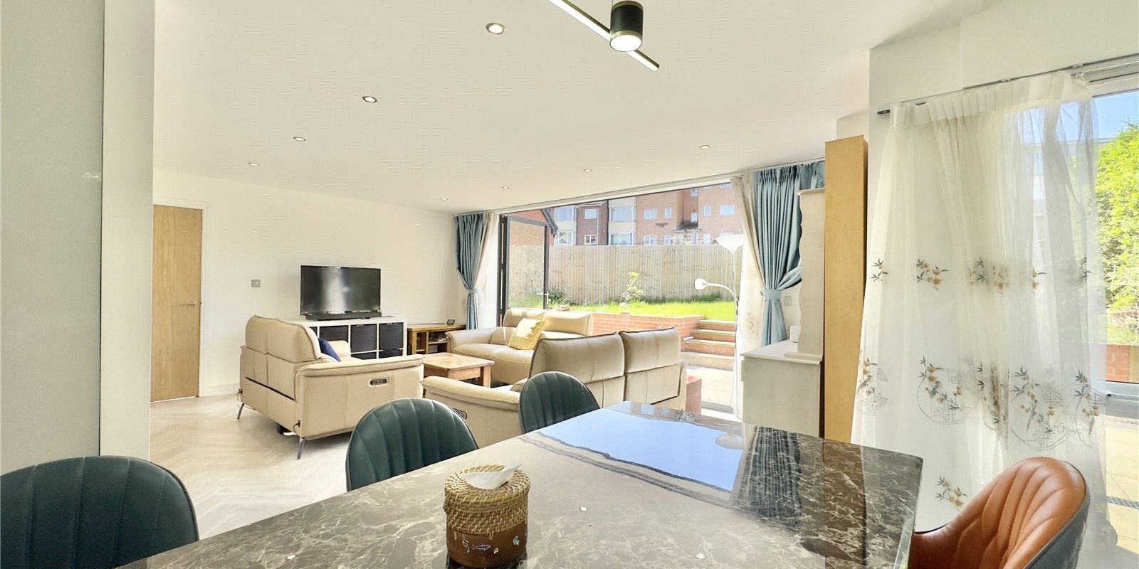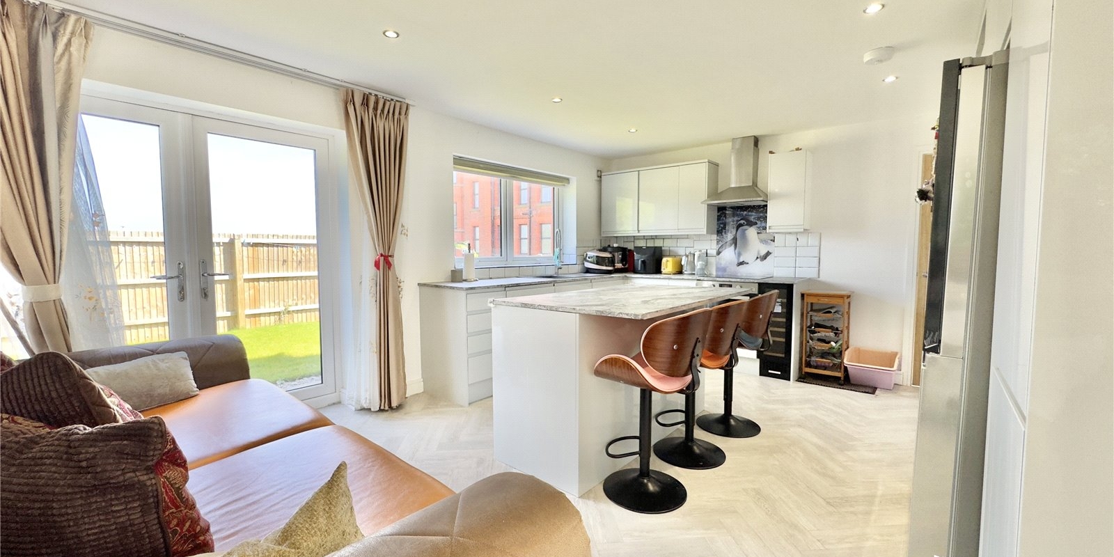 Thoughtfully designed with both elegance and practicality in mind, this contemporary home offers spacious living across two floors. The ground floor comprises a welcoming entrance hall, stylish WC, a generous lounge linked to an impressive open-plan kitchen, dining, and family area—perfect for entertaining or relaxing with loved ones. Bi-fold doors open seamlessly onto the private garden, allowing natural light to flood the living space.