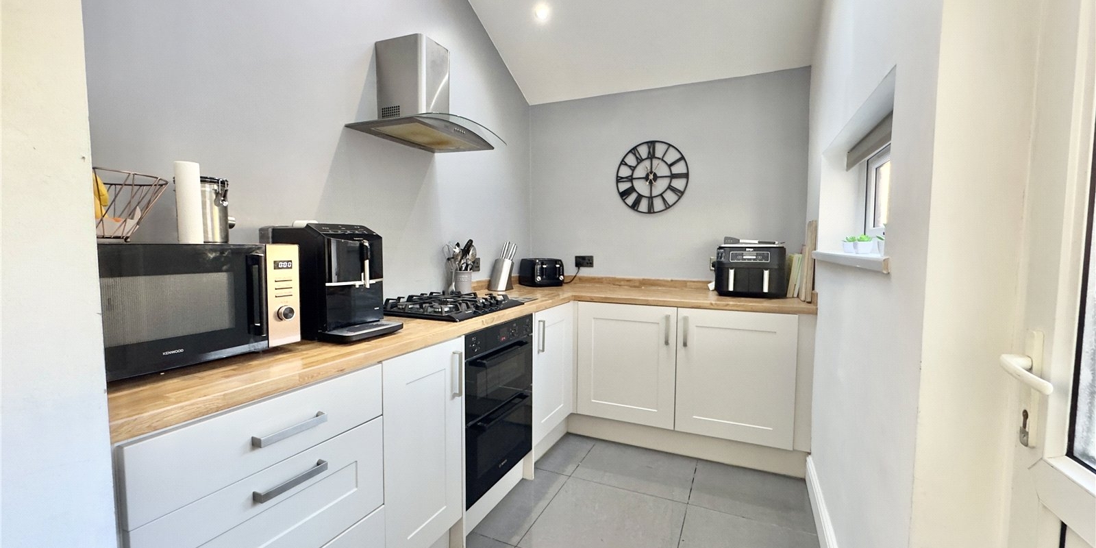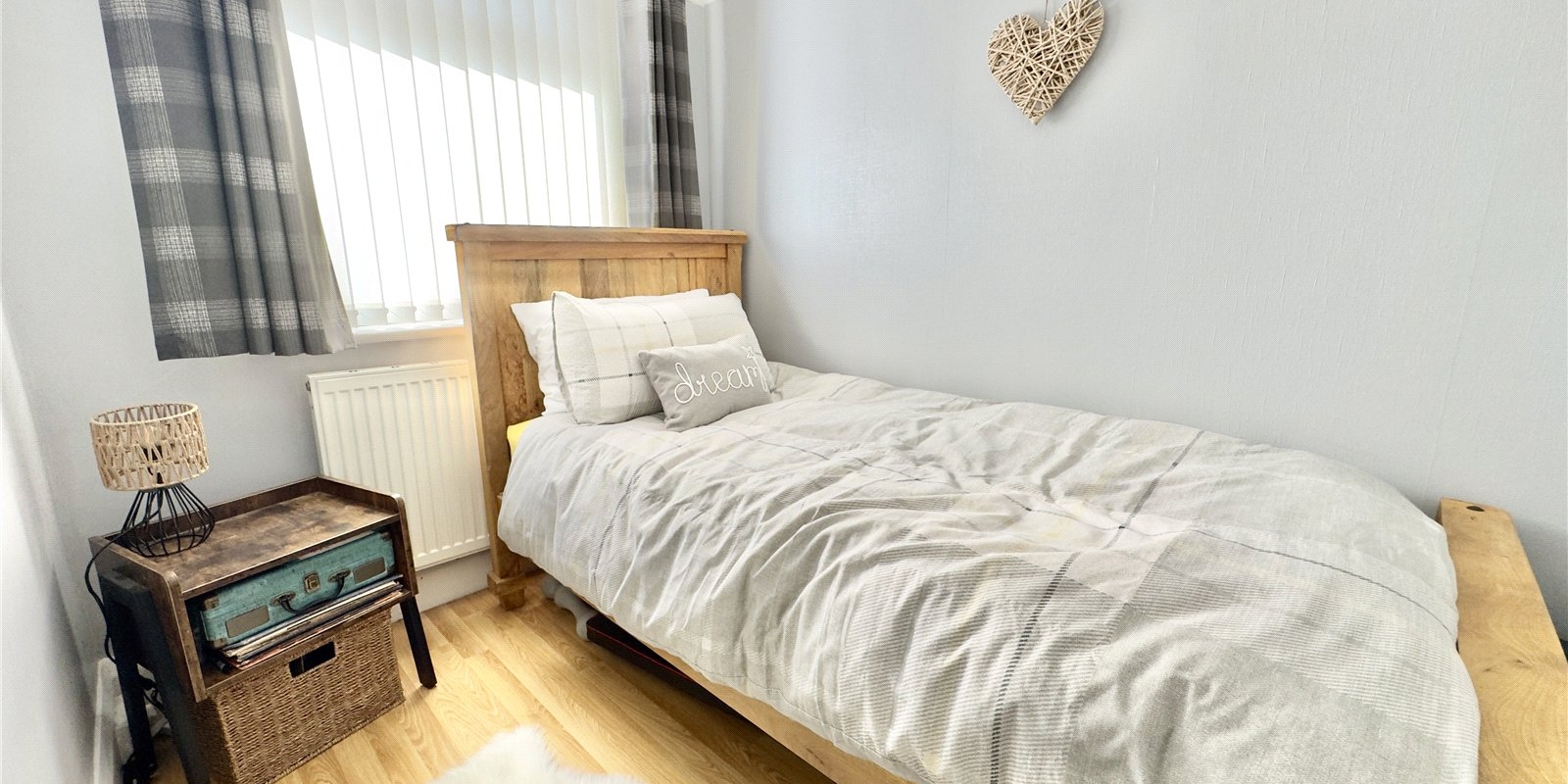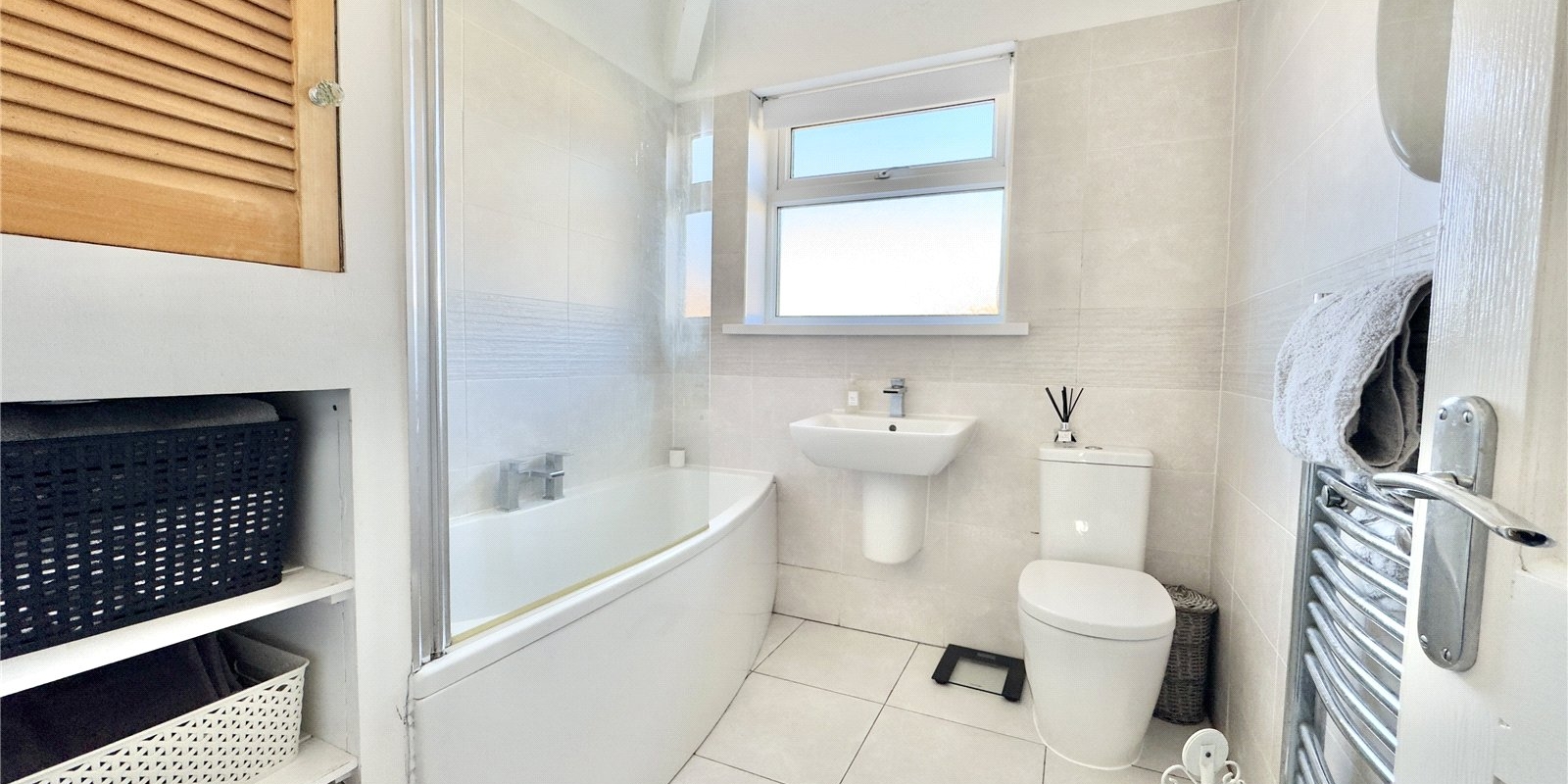 Upstairs, the property offers three well-proportioned bedrooms, including two comfortable doubles and a good-sized single room, ideal as a child’s bedroom, home office or nursery. The contemporary family bathroom is finished to a high standard, featuring a stylish suite and modern tiling.