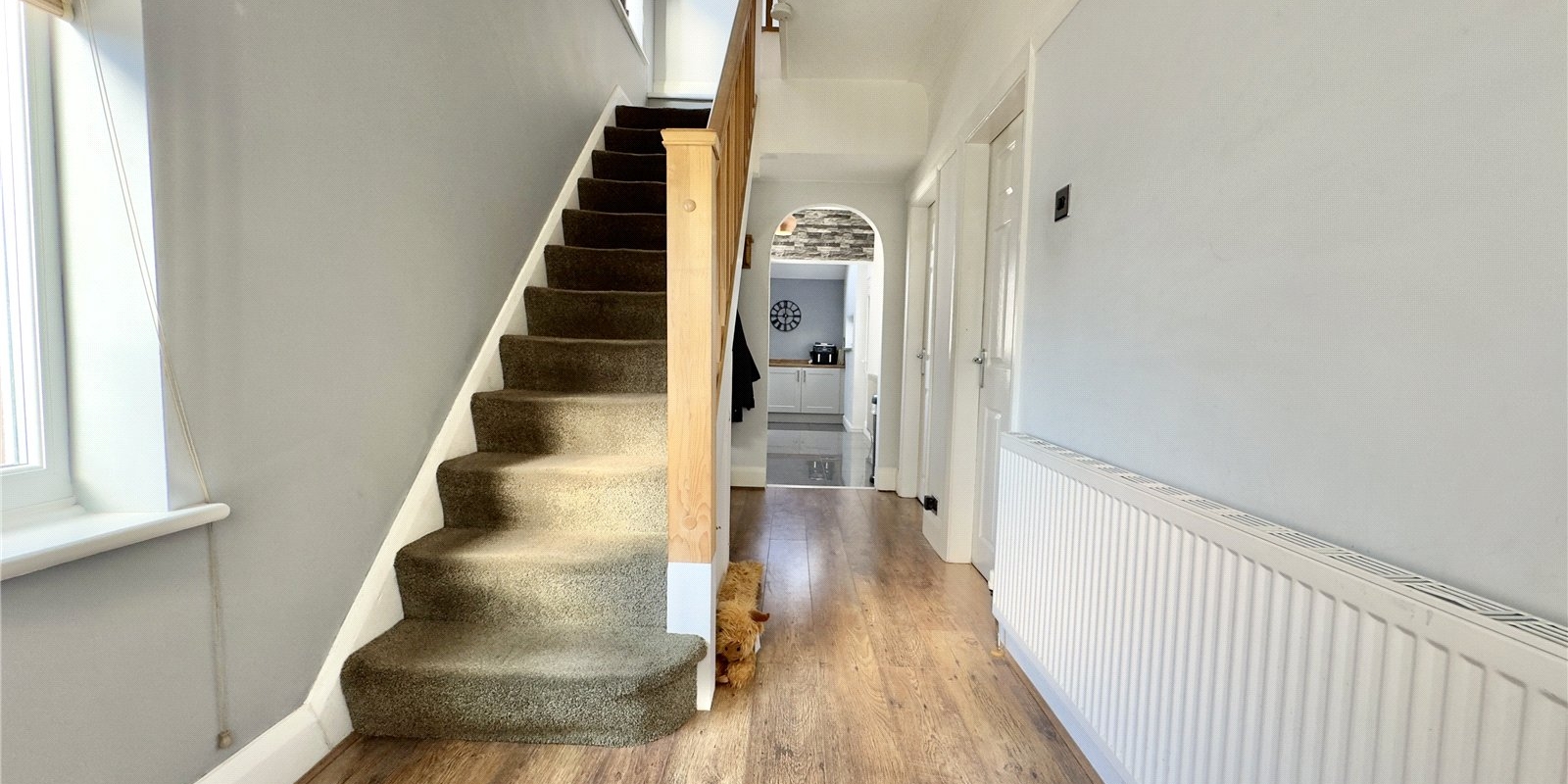 Upon approach, the home boasts attractive kerb appeal with a well-maintained frontage. Internally, the welcoming entrance hall immediately impresses, featuring a standout solid wood staircase that adds character and warmth while creating a striking first impression.