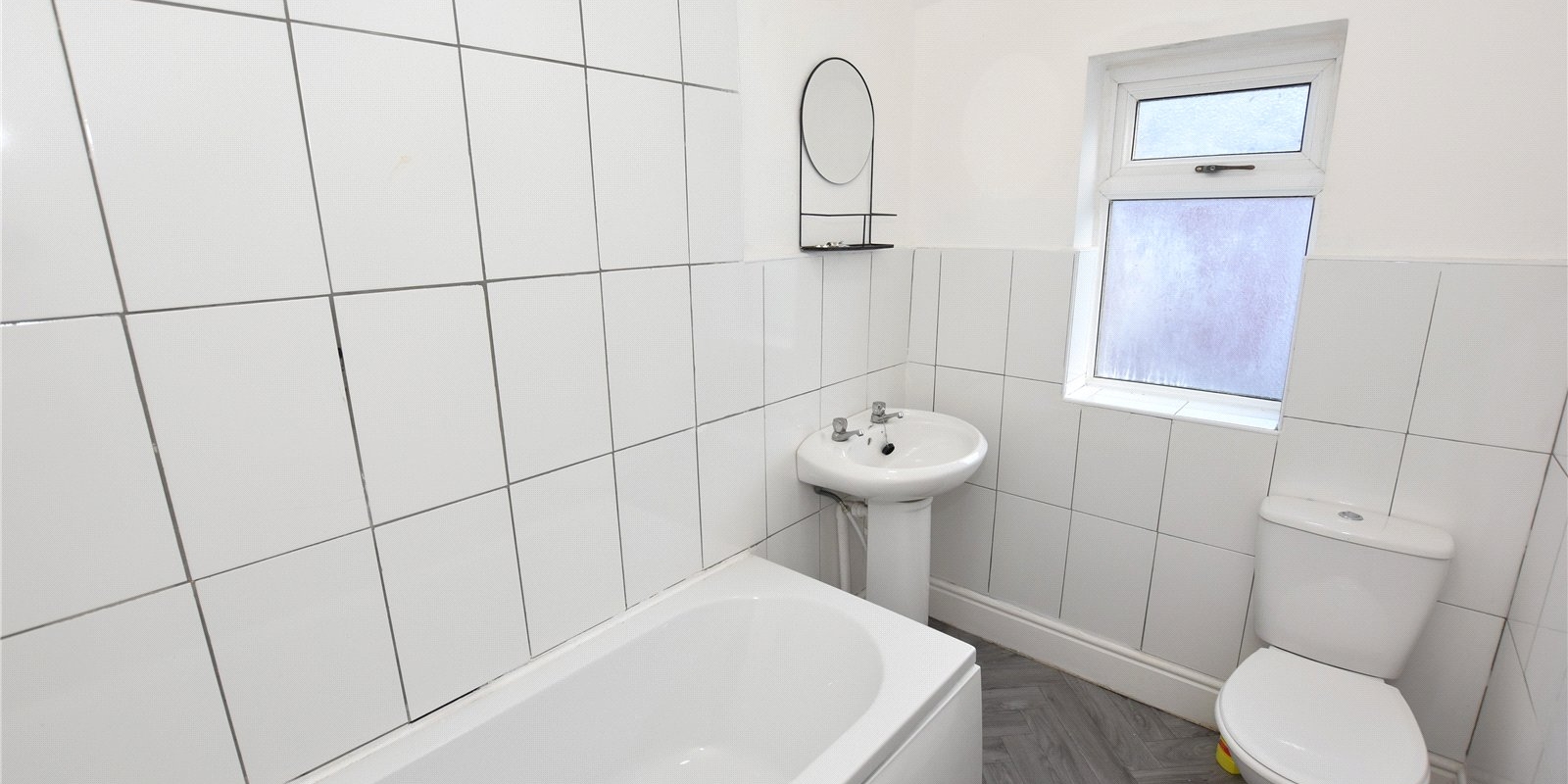 To the first floor are three well-proportioned bedrooms and a partially tiled family bathroom fitted with a white suite.