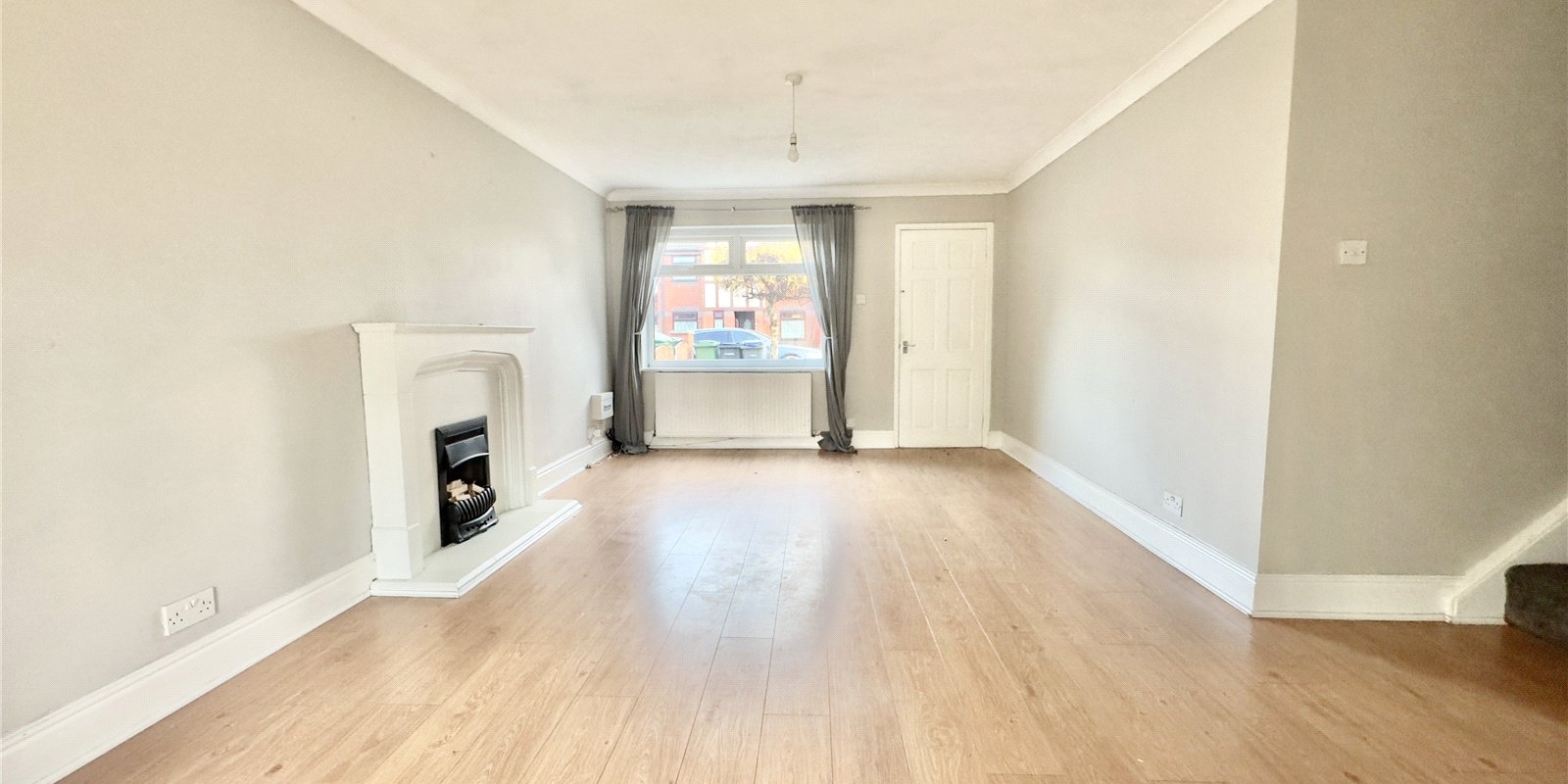The entrance hall leads into a bright and airy lounge-through-diner, featuring a large front window and patio doors to the rear, flooding the space with natural light and creating a seamless indoor-outdoor flow—ideal for family living or entertaining guests.