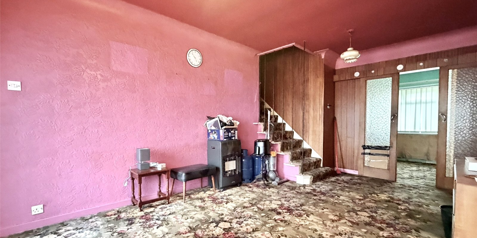 This well-proportioned home offers fantastic potential for modernisation and is perfect for buyers looking to create a long-term family home. The accommodation begins with a welcoming porch leading into a bright lounge, with stairs rising to the first floor. To the rear, sliding doors open into a generous open-plan kitchen and dining space, providing an excellent footprint for contemporary living and entertaining.