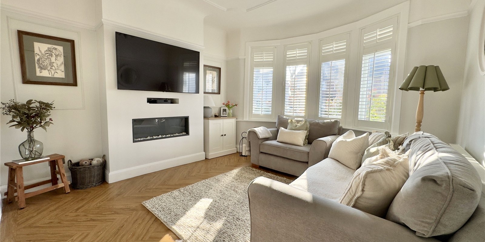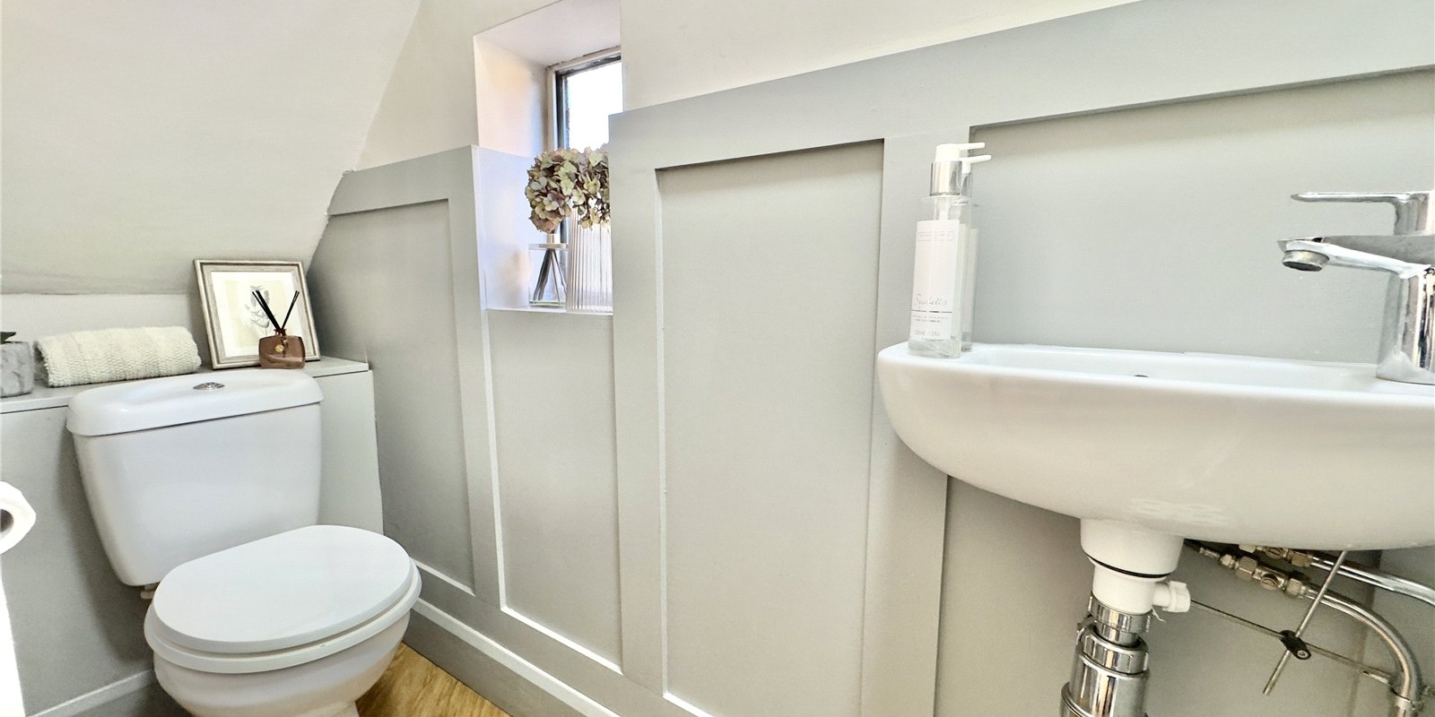 From the moment you step through the front door, the striking herringbone flooring sets the tone for the quality and attention to detail found throughout. The ground floor offers a welcoming front lounge alongside an impressive open-plan kitchen and dining space to the rear, complete with a bespoke fitted kitchen, centre island and sliding doors opening onto the garden—creating the perfect environment for both everyday living and entertaining. A convenient downstairs WC completes the ground floor accommodation.