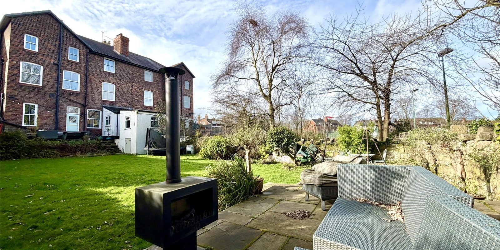 Externally, the enclosed rear garden enjoys a private aspect, backing directly onto the tennis club and not overlooked.
