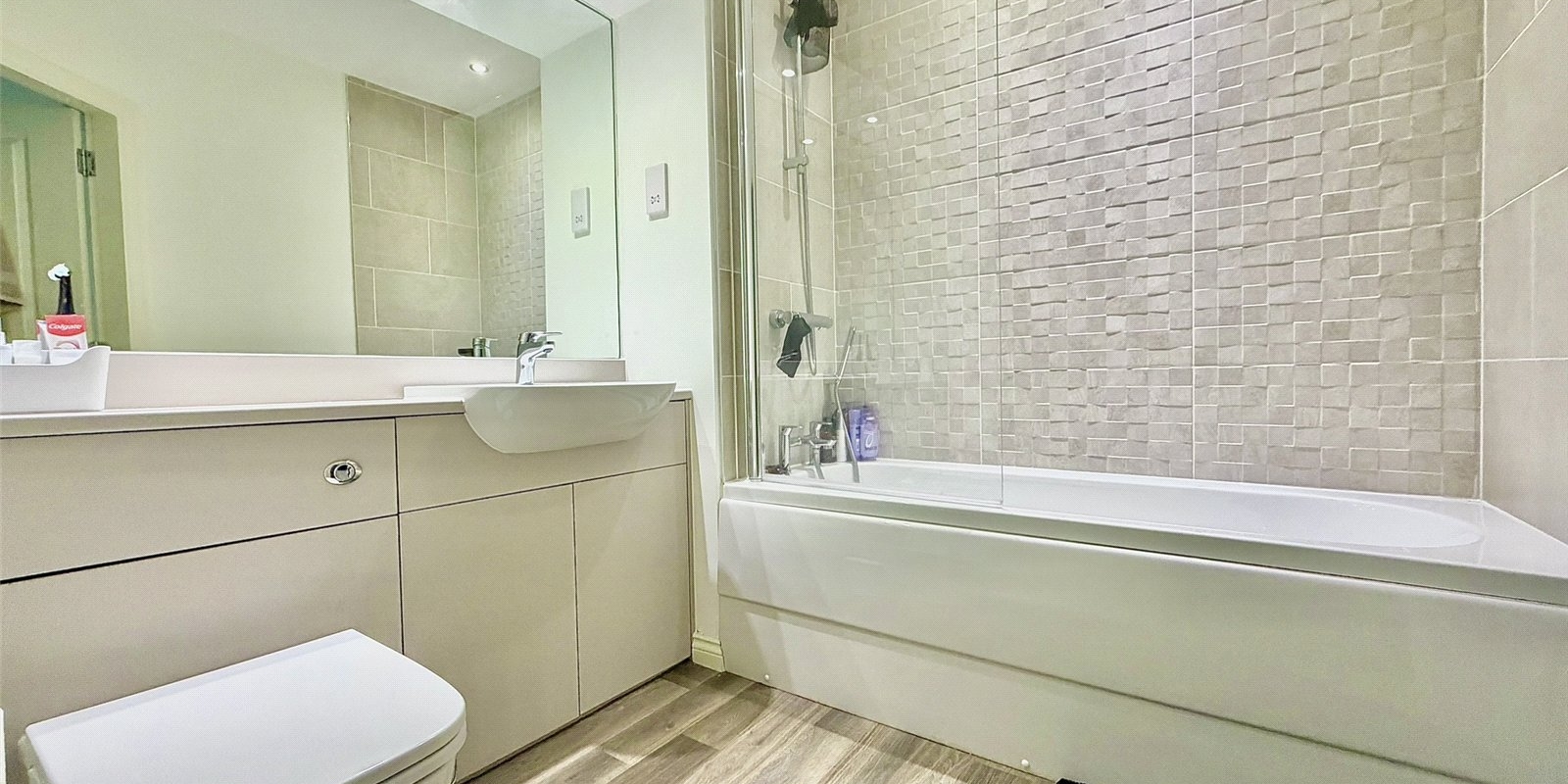 The modern fitted kitchen comes complete with a range of integrated appliances, while the master bedroom benefits from an en-suite shower room. A well-proportioned second double bedroom with fitted wardrobes and a stylish family bathroom complete the internal accommodation.