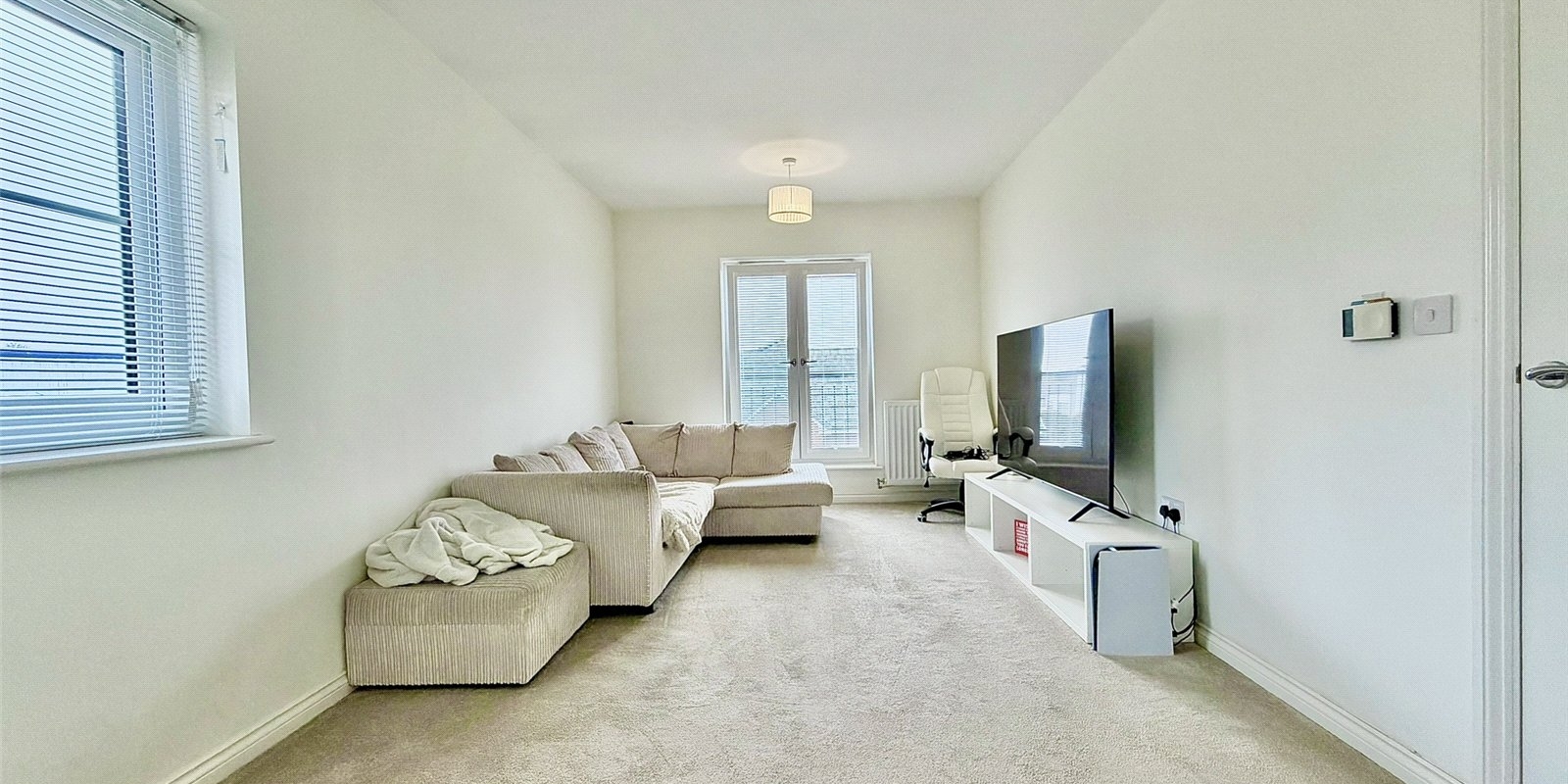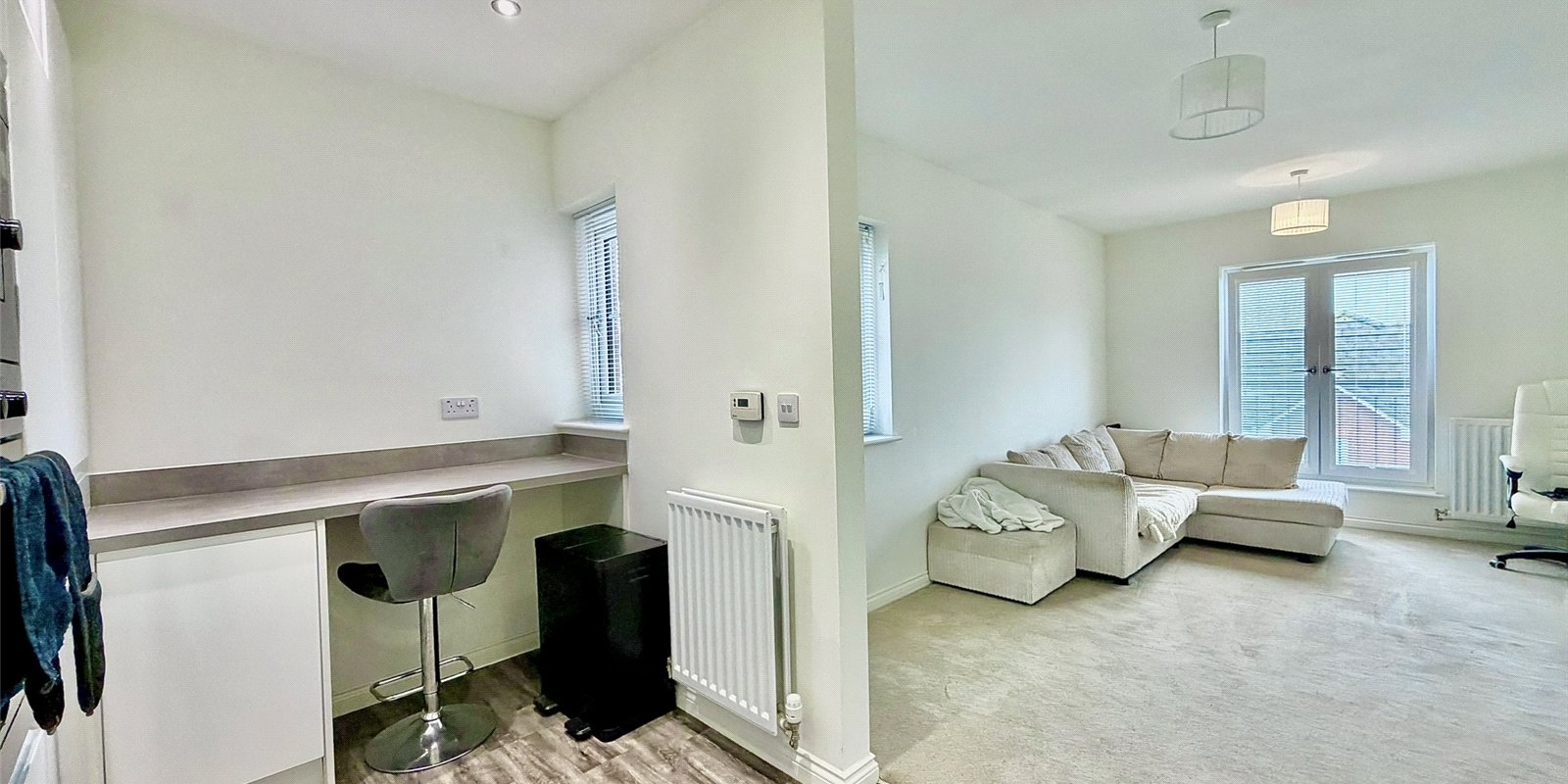 The property boasts a generous layout with a spacious entrance hallway leading to a bright and airy lounge featuring a Juliet balcony, perfect for relaxing or entertaining.