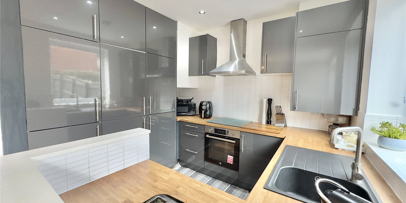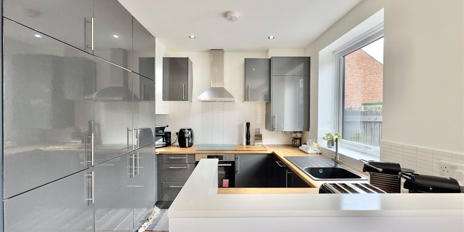 To the first floor, the property offers two generously proportioned double bedrooms along with a versatile third single bedroom, currently utilised as a walk-in wardrobe. These rooms are served by a sleek and modern family bathroom, finished to a high standard in keeping with the contemporary design of the home.