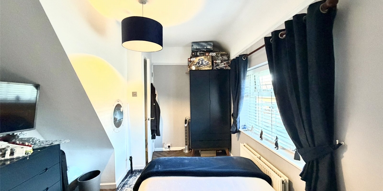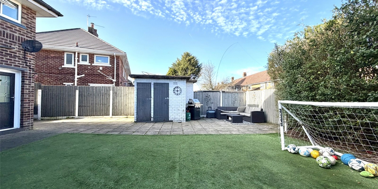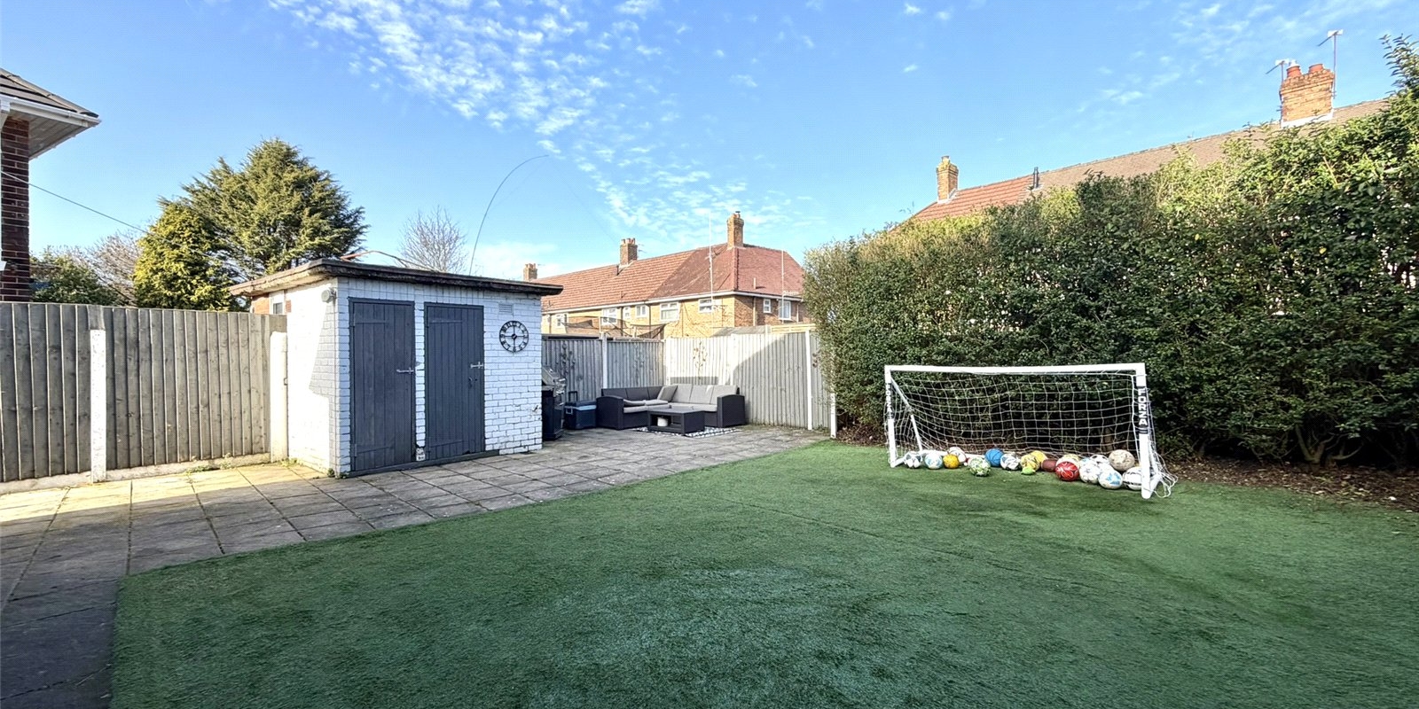 The outdoor space is a real highlight, boasting a generous wedge-shaped plot that offers more space than typically found in the area. With a laid-to-lawn section, patio area ideal for BBQs, an outbuilding for storage, and additional side patio space, this garden is perfectly suited for both families and those who enjoy outdoor living.