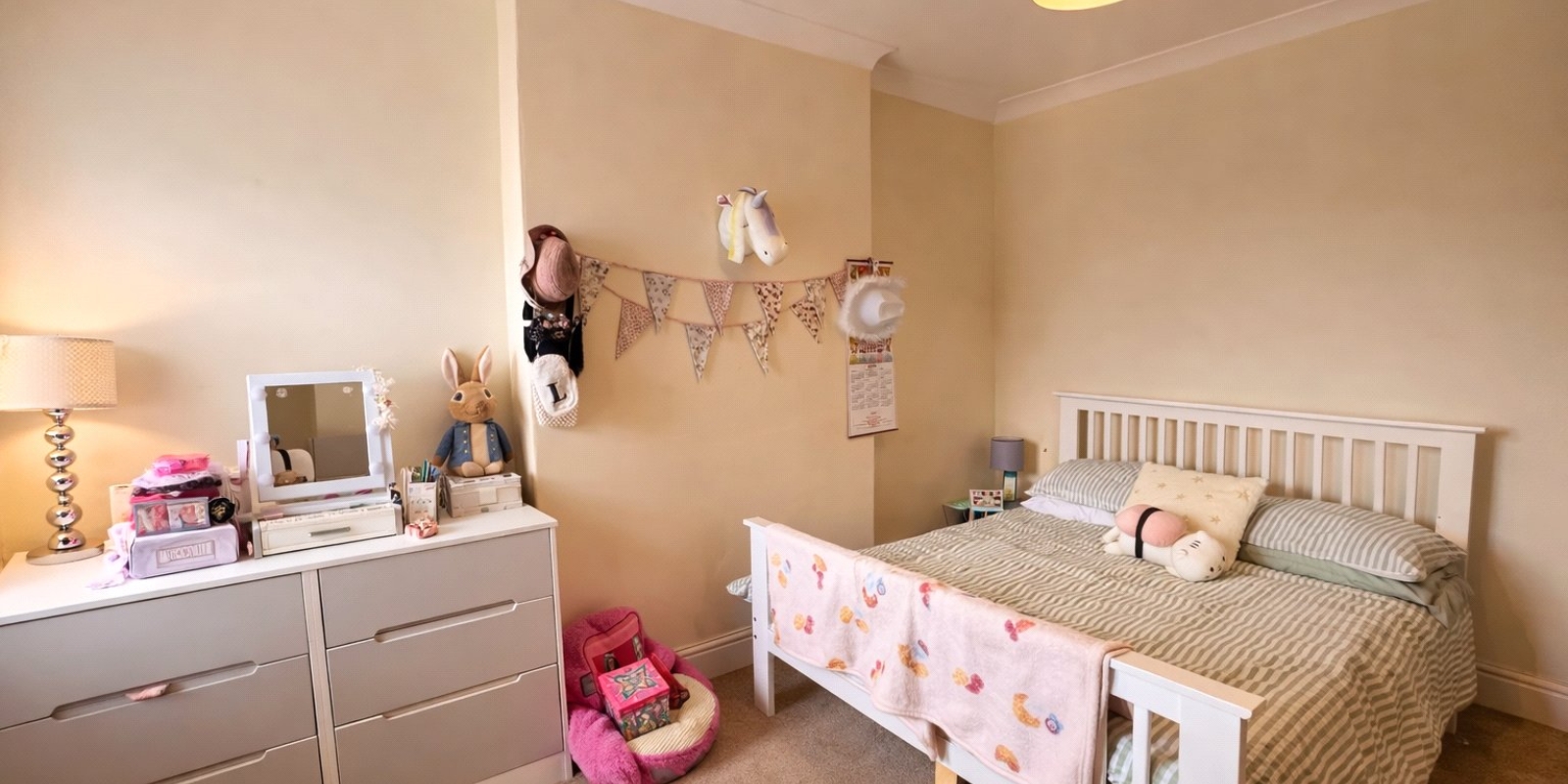 Upstairs, there is a family bathroom featuring both a bath and shower, along with well-proportioned bedrooms. The additional loft room provides valuable extra space, ideal for a home office, playroom, or guest area.