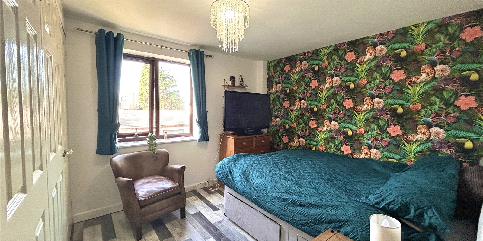 To the first floor, you’ll find two well-proportioned double bedrooms, with the master benefiting from built-in storage, along with a modern white three-piece bathroom.