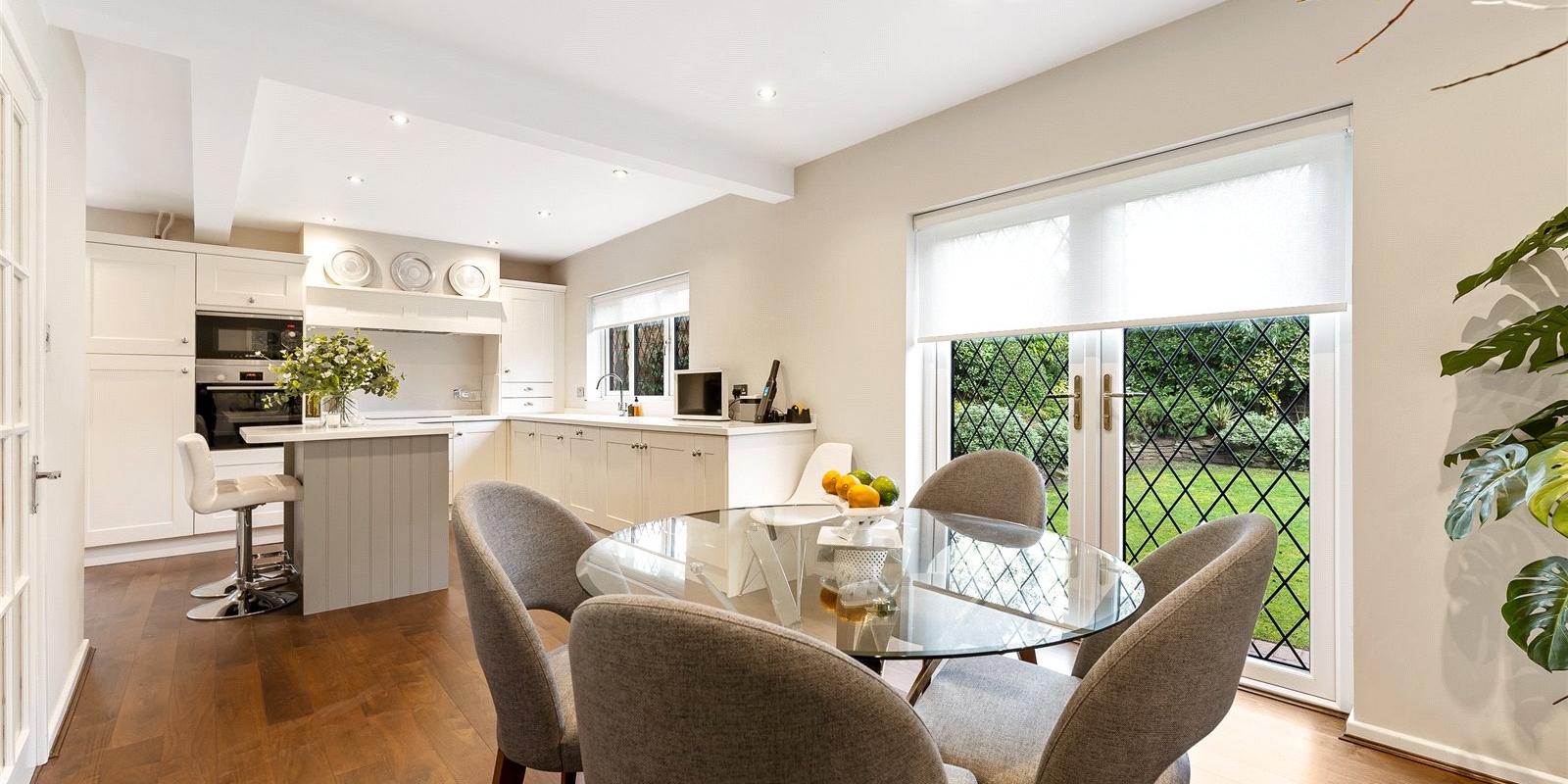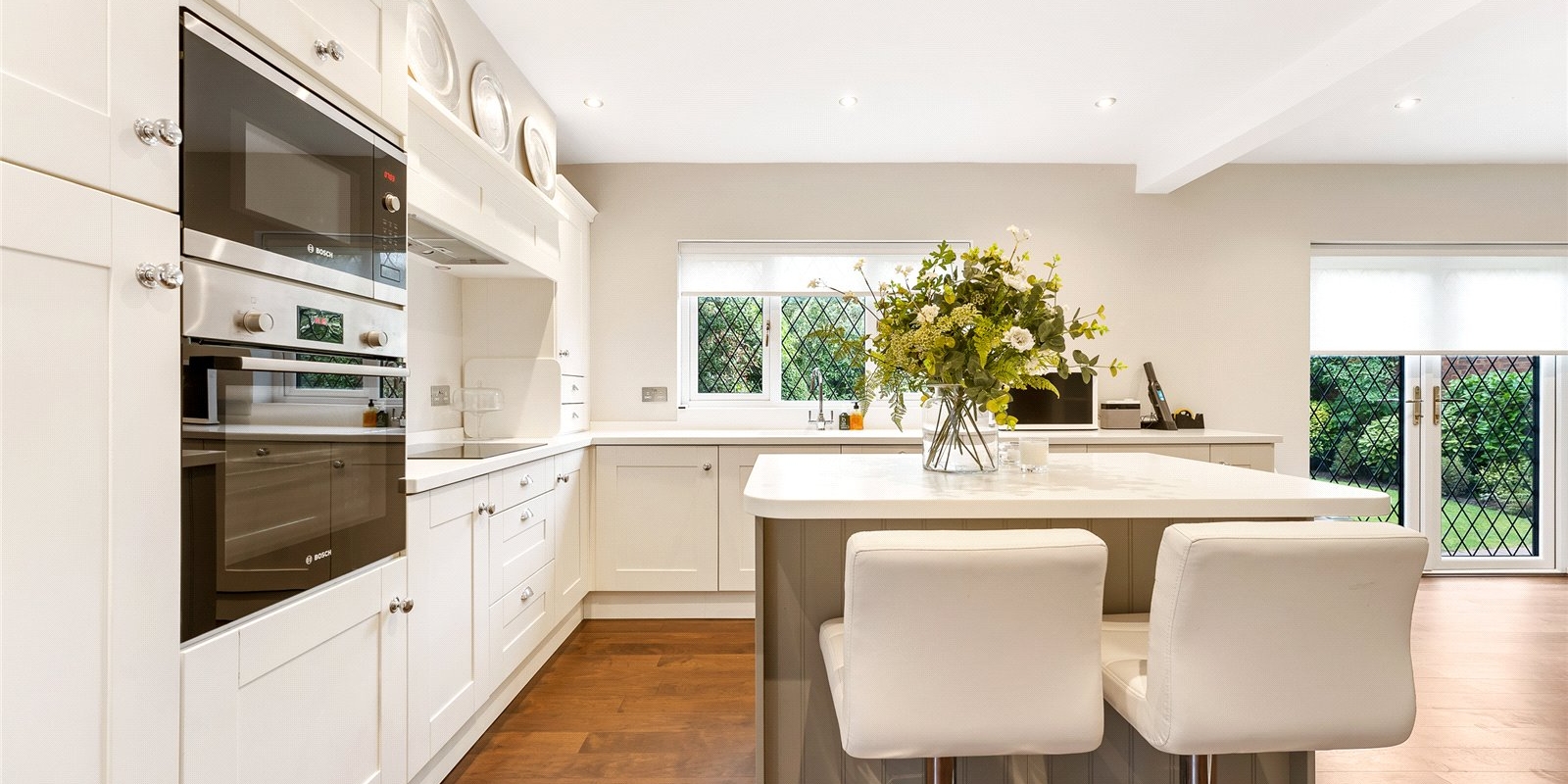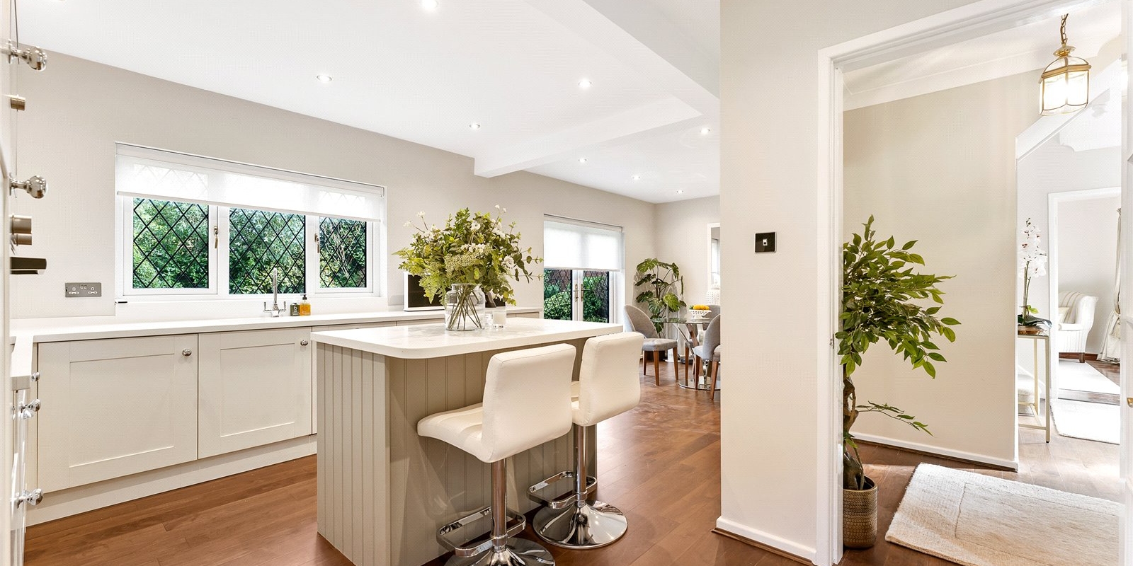 The heart of the home is undoubtedly the stunning kitchen. Fitted with high-quality cabinetry, sleek work surfaces and integrated appliances, it has been designed with both style and practicality in mind. A central island provides additional preparation space and informal seating, while the open-plan flow into the dining area makes it perfect for everyday living and entertaining alike.