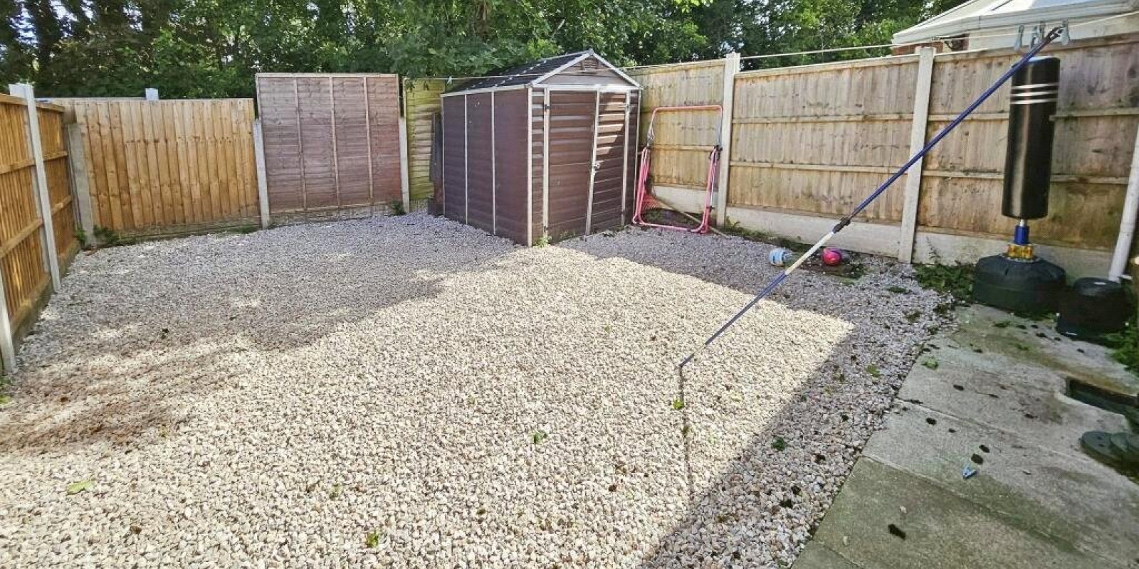 The rear garden is accessed through sliding patio doors and provides a private outdoor space perfect for enjoying the warmer months.