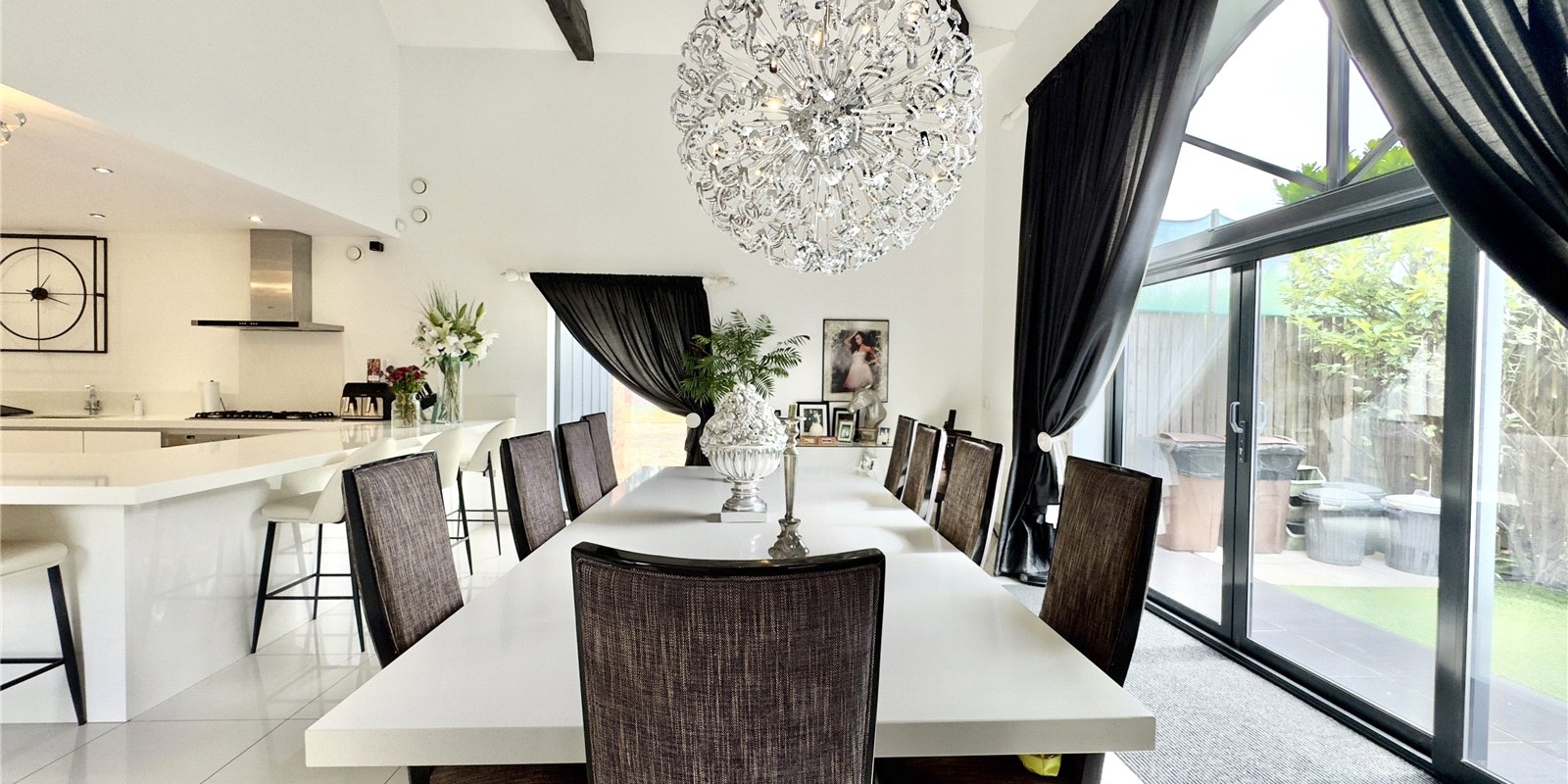 This remarkable residence is designed for both grand entertaining and relaxed family living. The expansive entrance hallway sets the tone for the home, leading to a spectacular open-plan kitchen and dining area, perfectly positioned to open out to the private pool terrace.