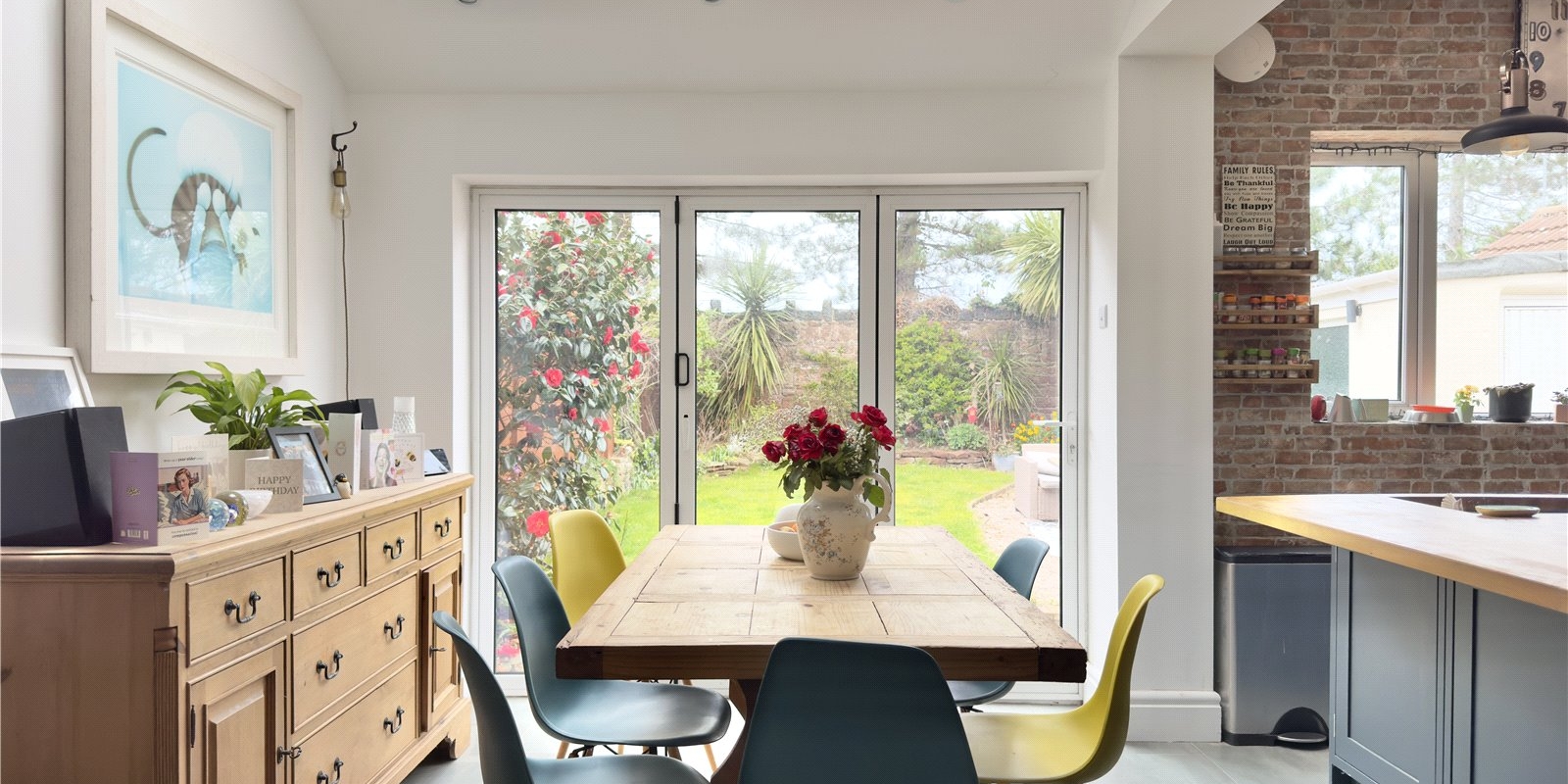 To the rear, the property has been thoughtfully extended to create a superb open-plan kitchen and dining area, forming the true heart of the home. Designed with both style and functionality in mind, the kitchen benefits from underfloor heating and an instant hot water tap, alongside ample storage and workspace. A separate utility room adds further convenience, keeping everyday tasks neatly tucked away. The dining area flows seamlessly out to the garden, making it perfect for entertaining and modern family living.