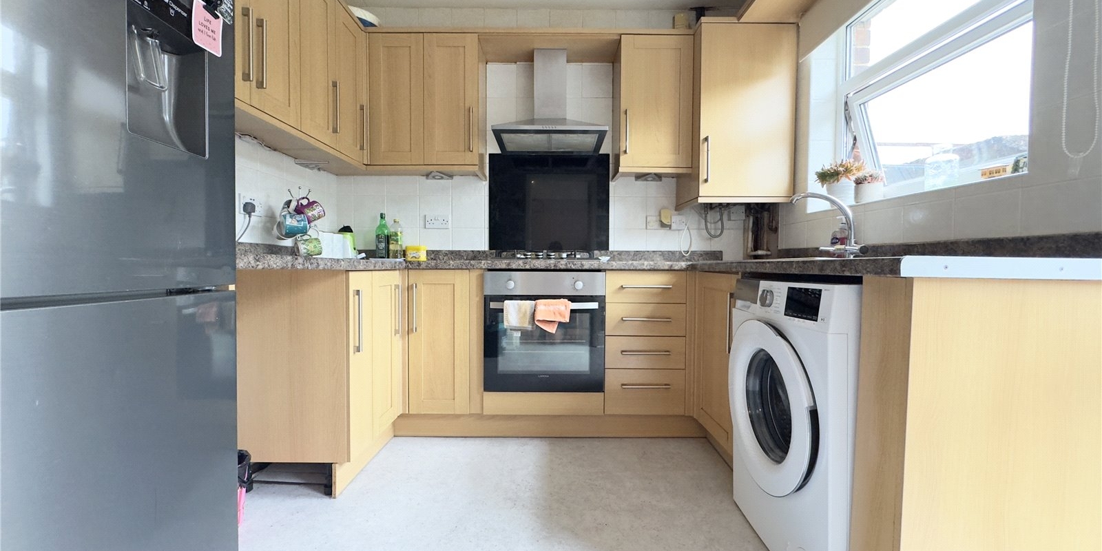 To the rear the kitchen has been designed with both practicality and aesthetics in mind, offering generous preparation space and excellent storage. The seamless connection to the garden enhances the sense of flow, making indoor-outdoor living particularly enjoyable during the warmer months.