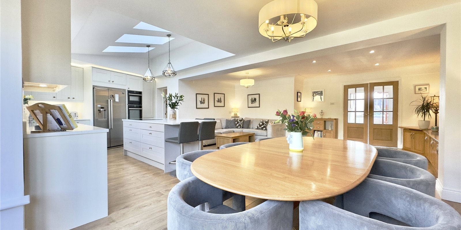The heart of the home showcases a stunning open-plan kitchen and entertaining area, perfect for family gatherings and dinner parties alike. Additional reception rooms include a dedicated study/office space, comfortable lounge, and separate snug, providing versatility for modern living requirements.