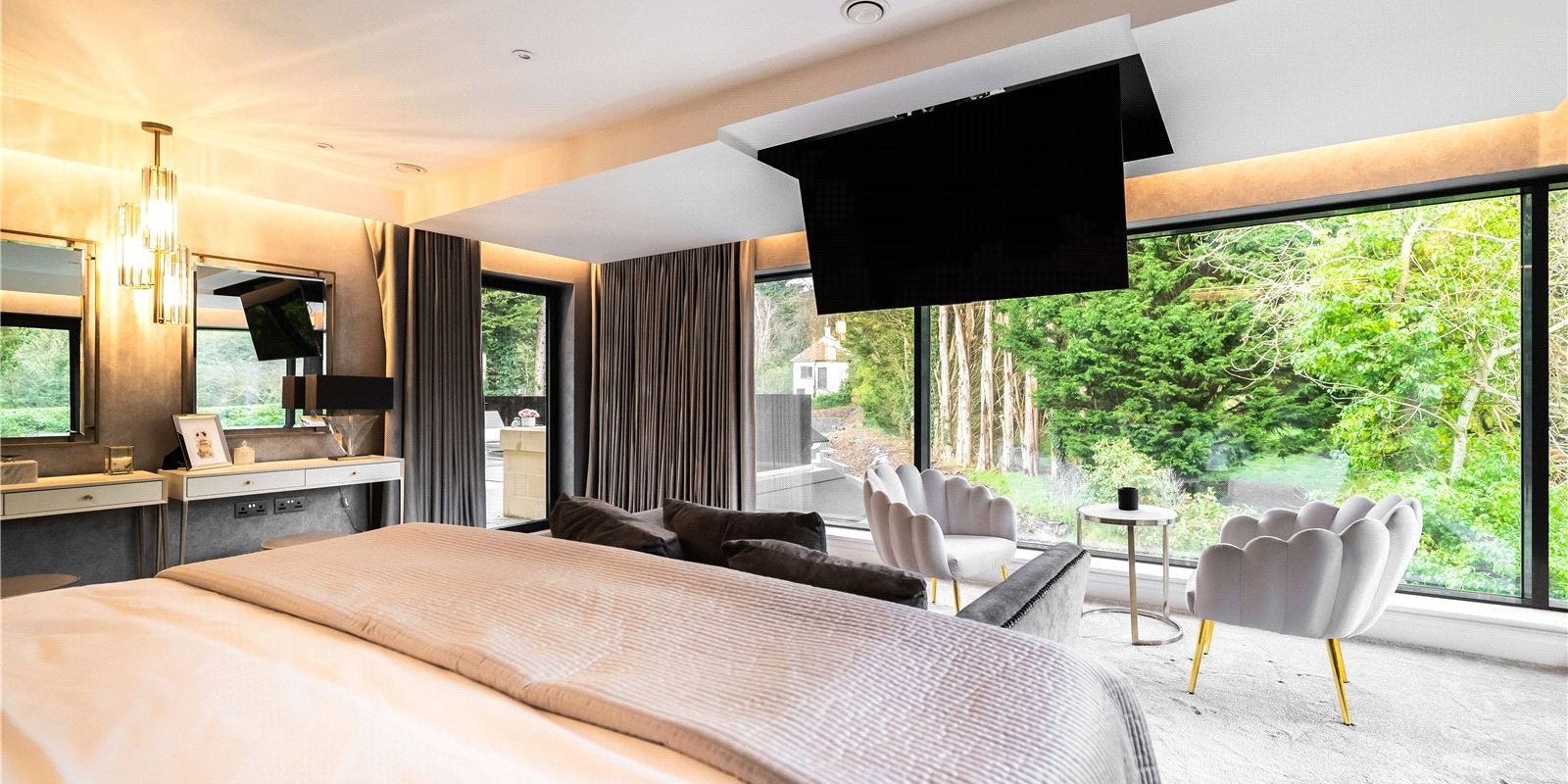 Situated set back from the road with electric gated access and a sweeping driveway providing ample off-road parking leading to the triple garage, this residence is encapsulated perfectly by its landscaped grounds, ideal for entertaining or relaxing.