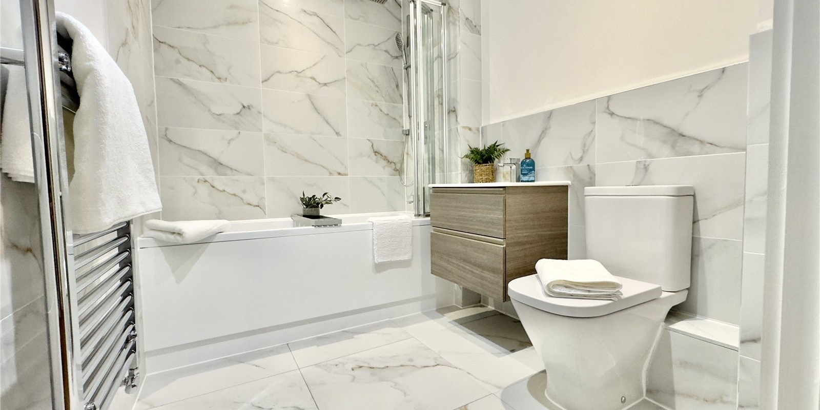 Number 8 located on the first floor, is an exceptional one-bedroom apartment with finishing touches that complement your lifestyle. Open plan kitchen, dining and living areas allow for a feeling of easy flow and space. Quartz worktops with matching upstands offer the perfect combination of style and practicality, complimented by premium Bosch appliances. For the bathroom, elegant design has been combined with practical solutions to ensure you start every day feeling refreshed. Bathrooms include contemporary sanitaryware with concealed fittings, heated towel radiators and luxurious baths. The design ethos is luxury-as-standard which is why you’ll also find hotel-style showerheads and designer tiles in every bathroom.